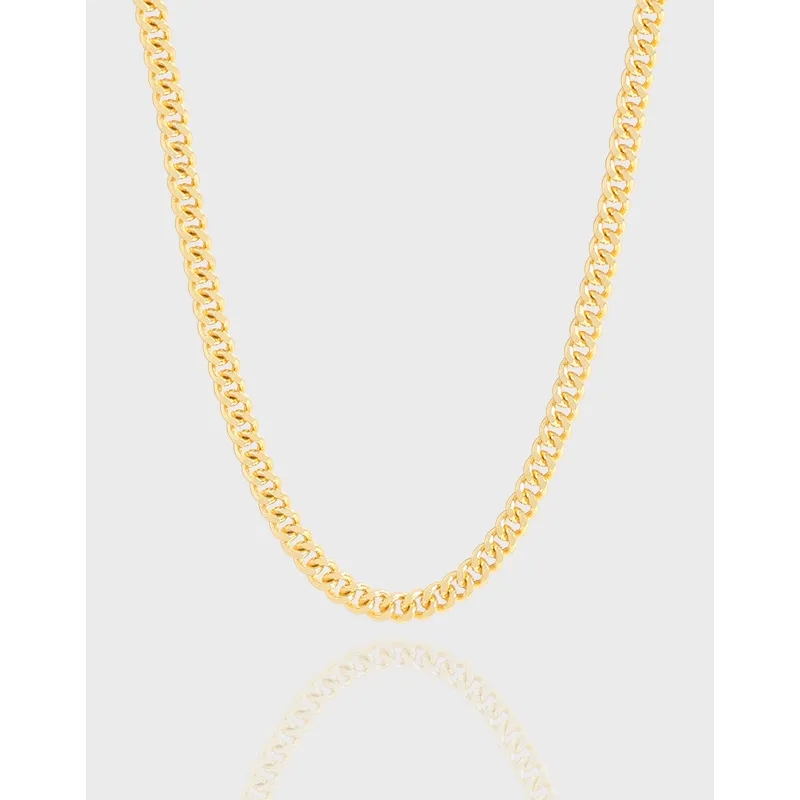 This elegant chain features a classic style with meticulously crafted interlocking links. Each link possesses a smooth, polished surface that reflects light beautifully, creating a dynamic interplay of shimmer and shadow. The uniform pattern provides a refined texture, feeling both robust and fluid as it drapes, mirroring the organic flow of the world around us.