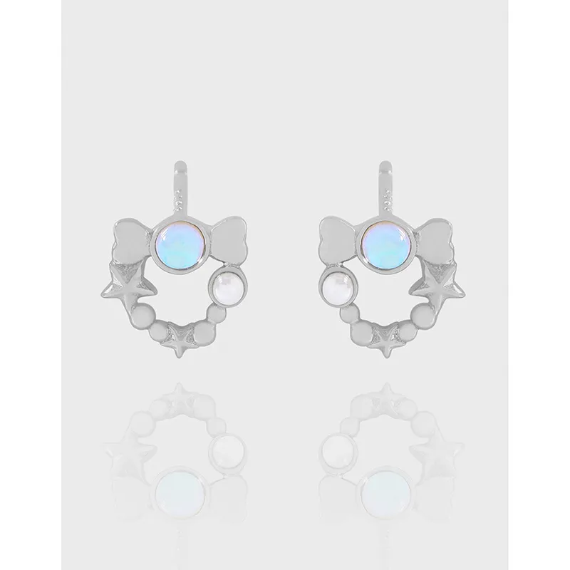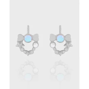 Whimsical Silver Bow & Star Opal Wreath Earrings