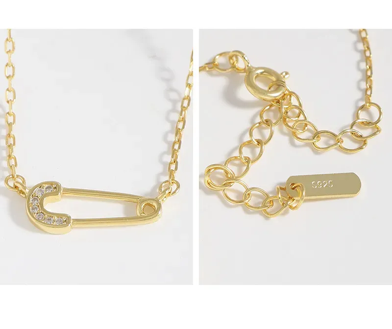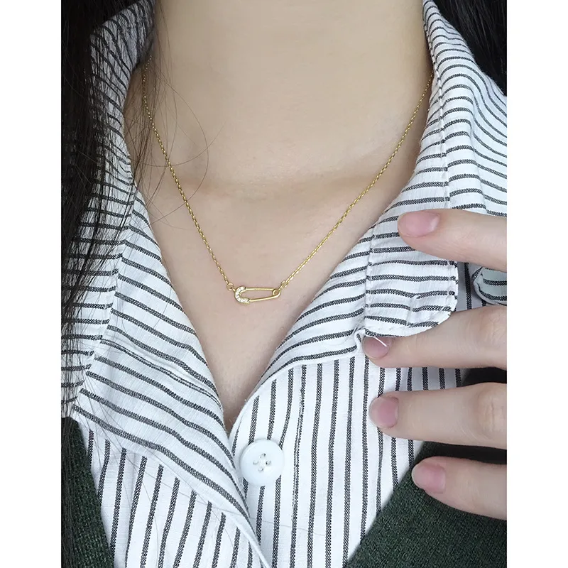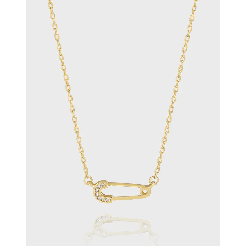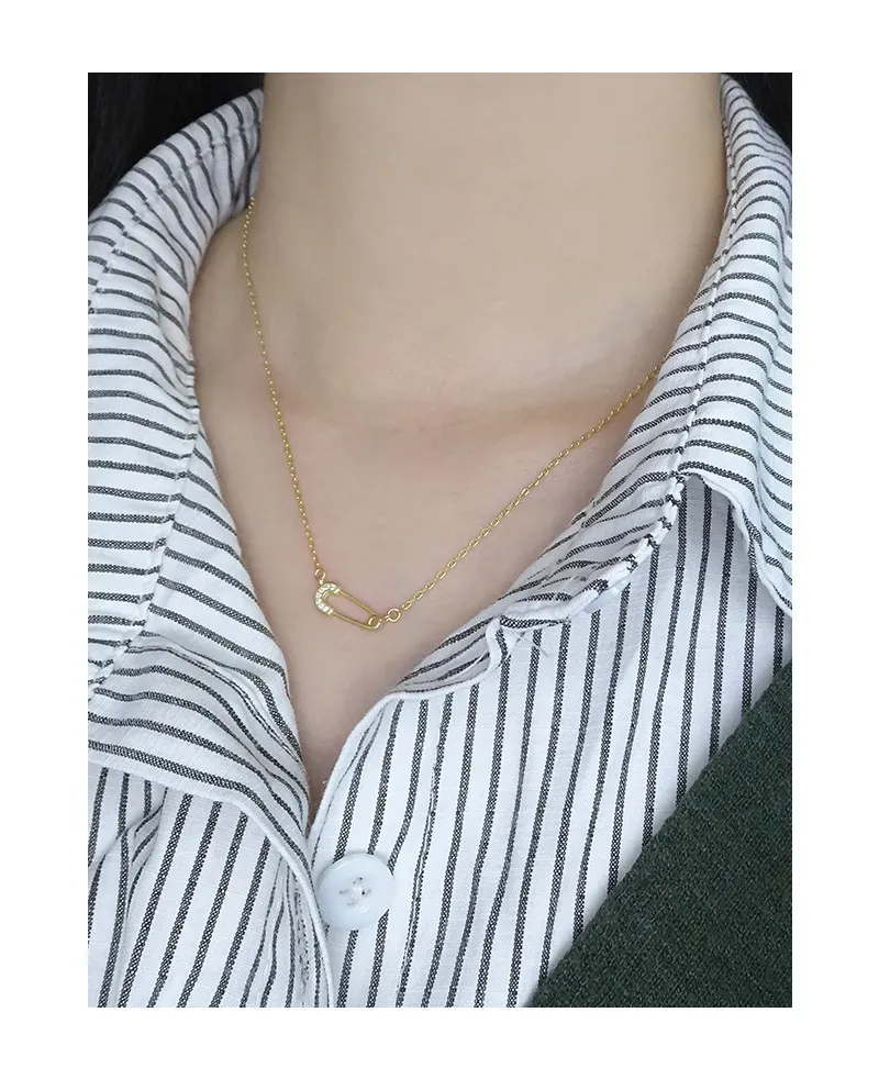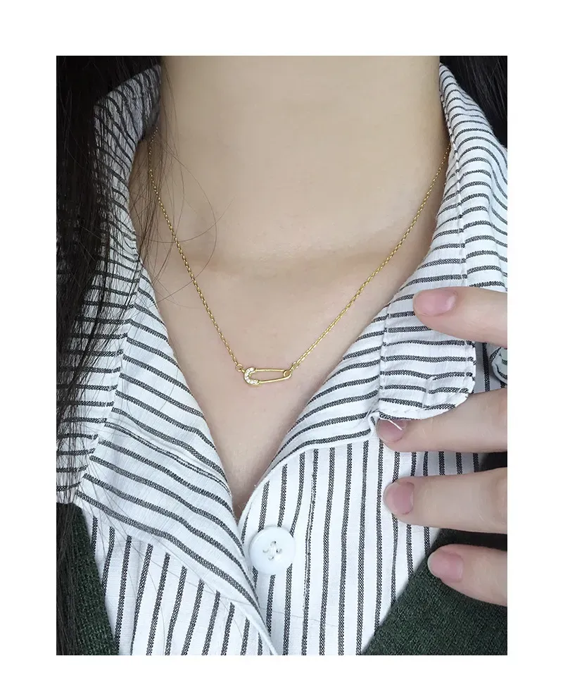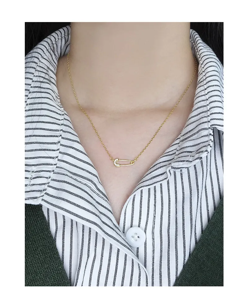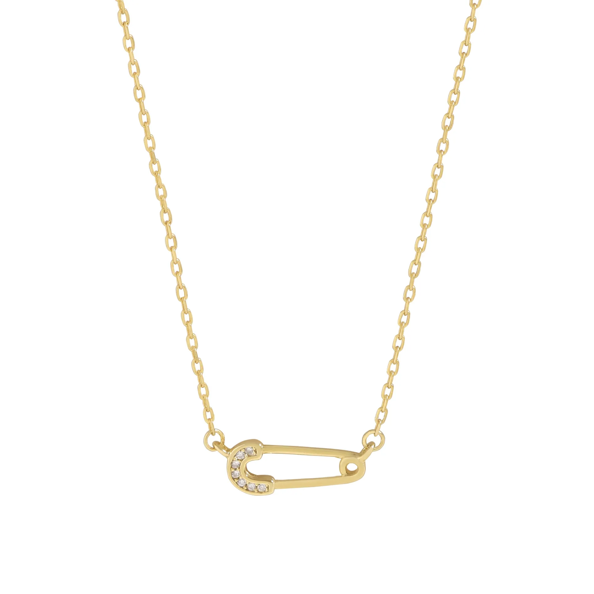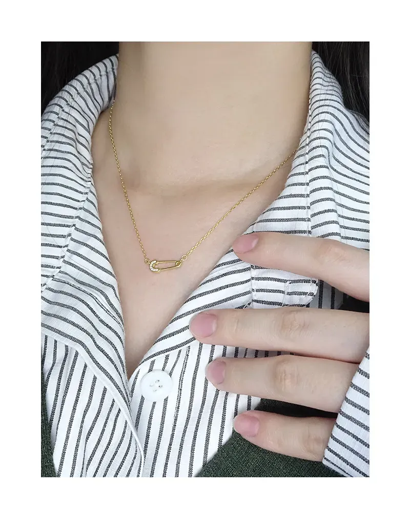 Chic Gold Safety Pin Necklace with Pavé Sparkle