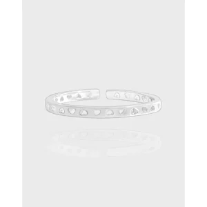 - Patterns & Textures: The smooth, lustrous surface of the ring is beautifully contrasted by a continuous pattern of finely cut-out hearts. These irregular, organic heart shapes are thoughtfully placed, celebrating the imperfect beauty of nature’s patterns and adding a touch of whimsical charm to its ethereal design.