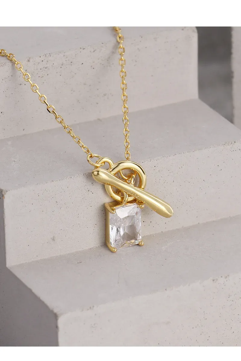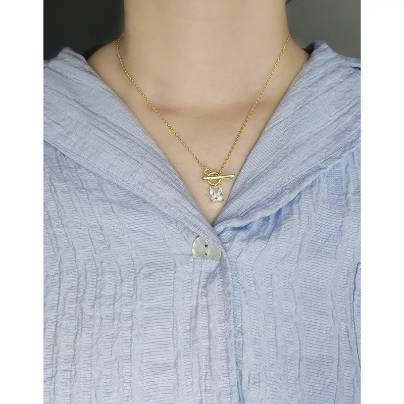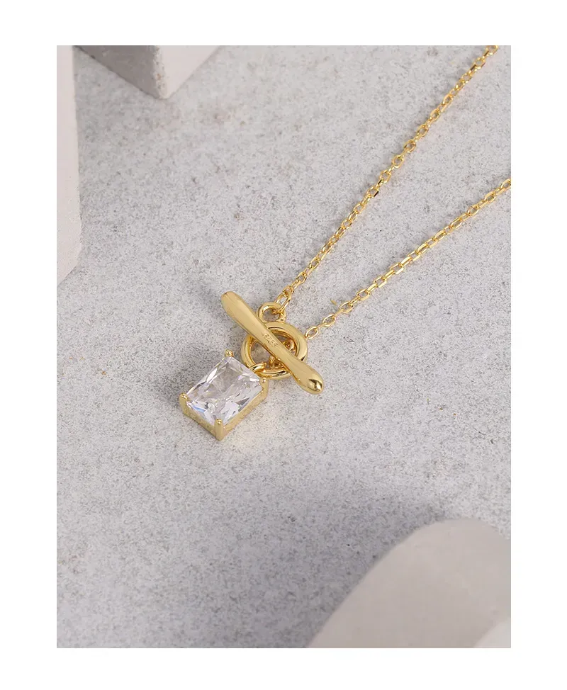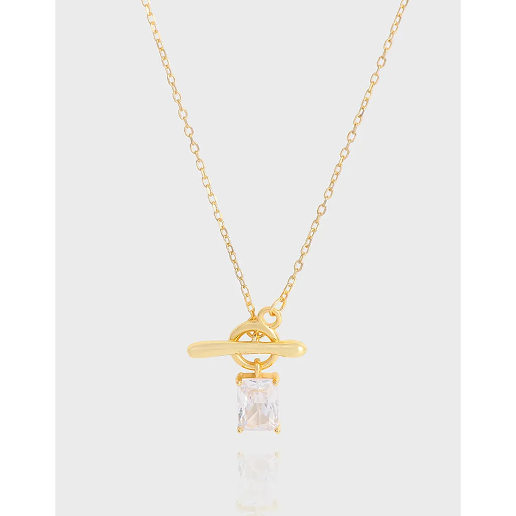 • Style: This elegant Furiana Necklace features a distinctive front-facing toggle clasp, where a smooth, polished bar gracefully interlocks with a refined ring. Suspended beneath, a beautifully cut rectangular crystal acts as the focal point, creating a minimalist yet striking silhouette perfect for any occasion.