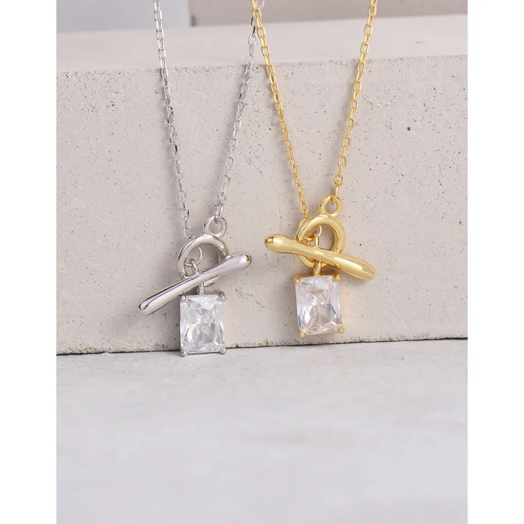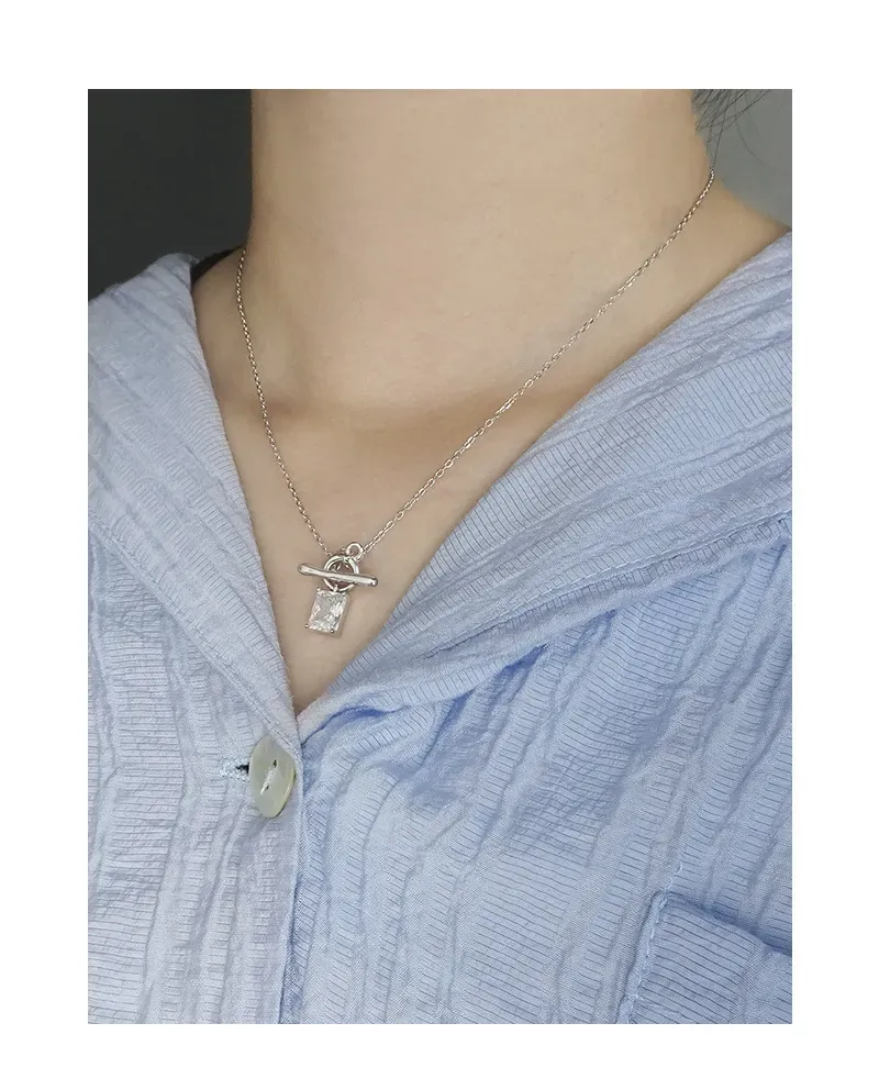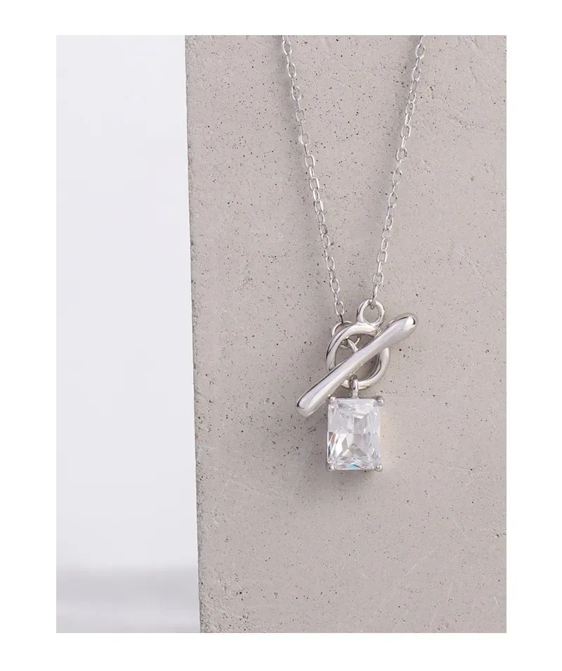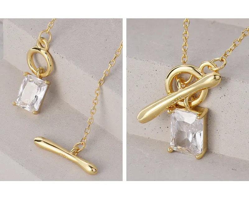 • Style: This elegant Furiana Necklace features a distinctive front-facing toggle clasp, where a smooth, polished bar gracefully interlocks with a refined ring. Suspended beneath, a beautifully cut rectangular crystal acts as the focal point, creating a minimalist yet striking silhouette perfect for any occasion.