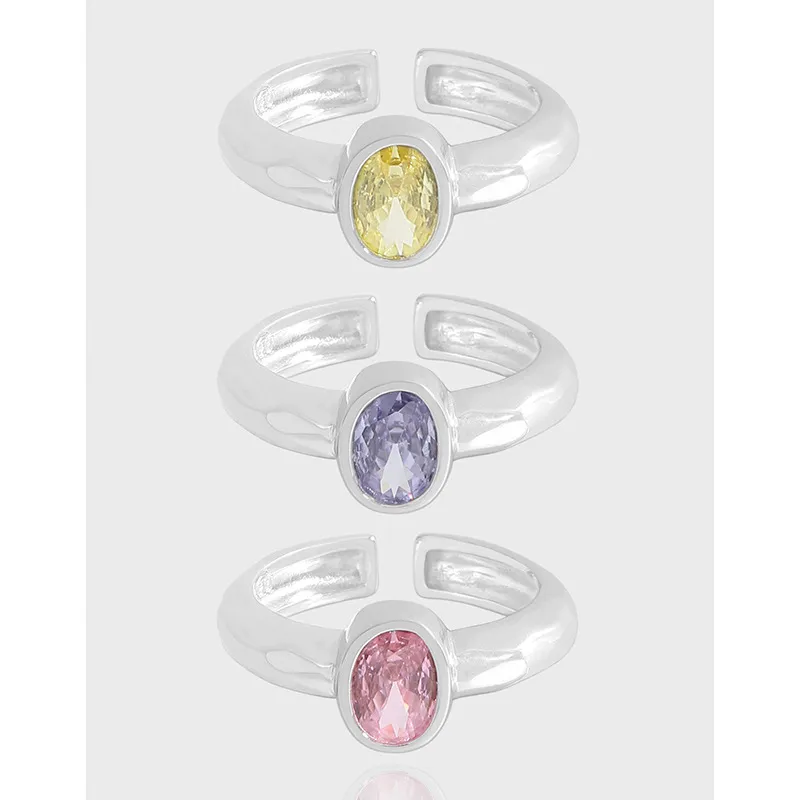 • Color: This collection offers a celestial palette of hues, including a vibrant yellow, a delicate lavender purple, and a soft, ethereal pink. The gemstones are elegantly complemented by the high-shine, cool silver finish of the band.