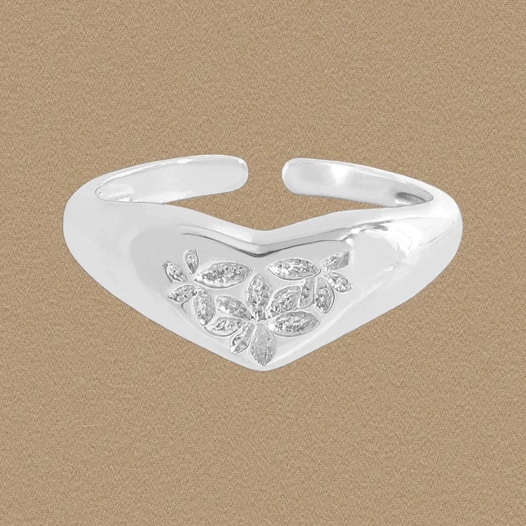 Embrace the ethereal beauty of nature with this exquisite adjustable silver ring, a true ode to the natural world.