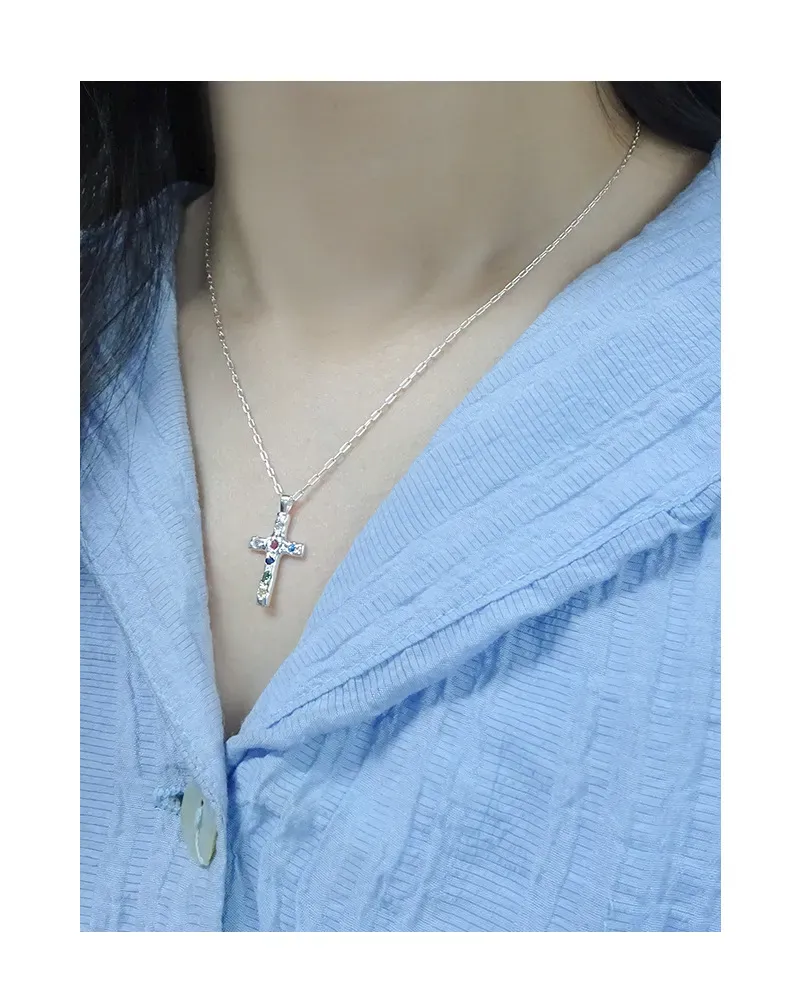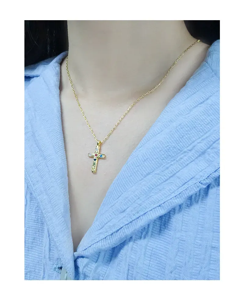 - Style: A modern and elegant take on the classic cross pendant, this Galoria Necklace offers a blend of reverence and playful vibrancy. Its delicate paperclip-style chain provides a contemporary foundation for the eye-catching charm.
