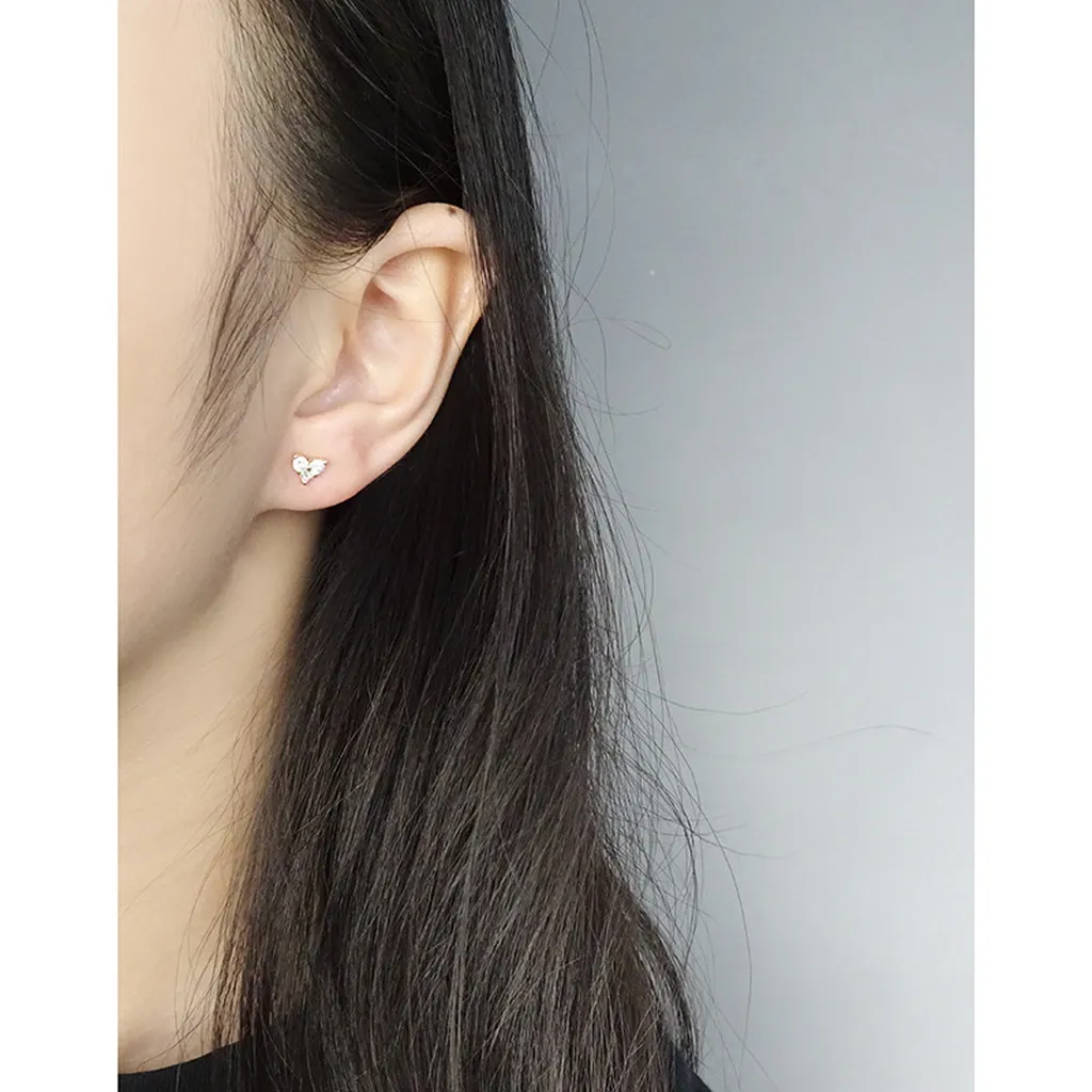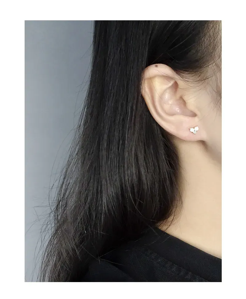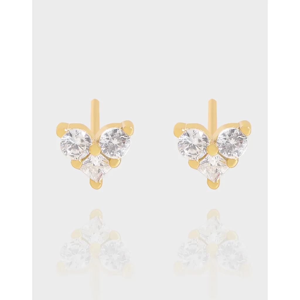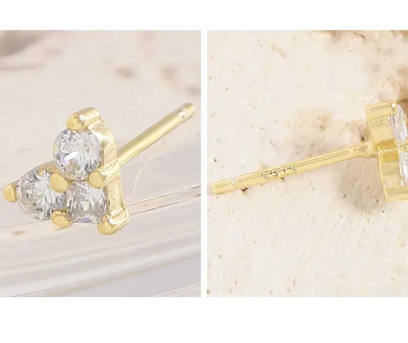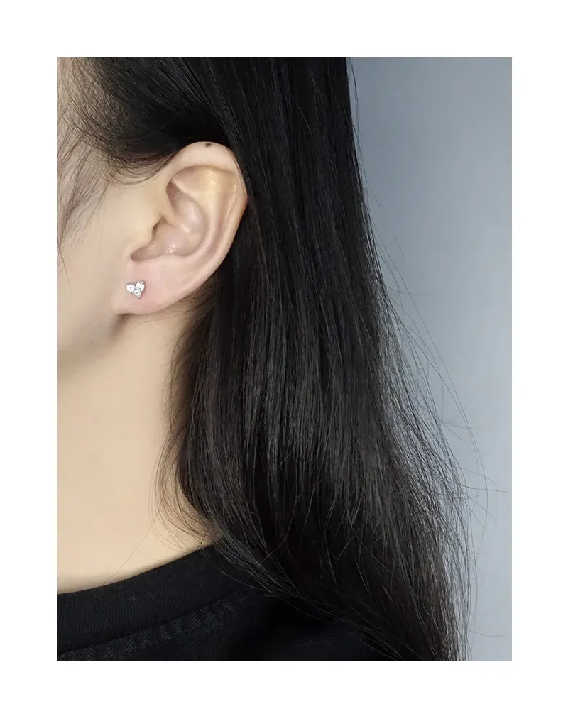 - Each stud showcases three brilliant cubic zirconia stones: two round brilliant-cut stones artfully arranged above a single, radiant princess-cut stone.