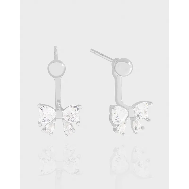 The style combines the simplicity of a classic stud with the dramatic flair of an elegant drop. A charming bow motif forms the decorative element, designed to suspend gracefully below the earlobe, offering a modern and sophisticated way to wear earrings suitable for any occasion.