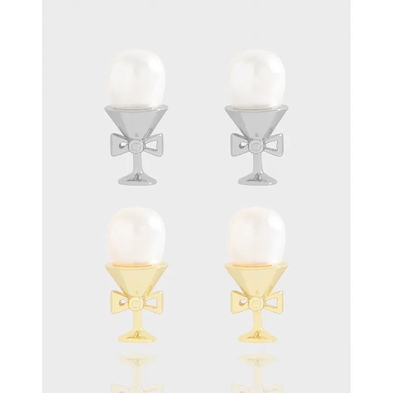 These whimsical yet elegant stud earrings feature a lustrous freshwater pearl nestled within a miniature martini glass design. A sophisticated and playful accessory, they are perfect for adding a unique touch to any ensemble.