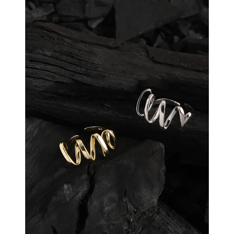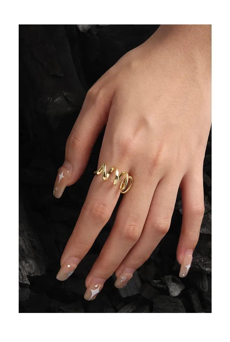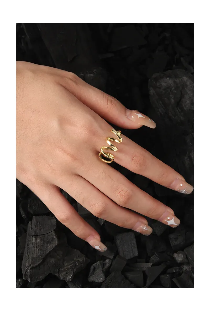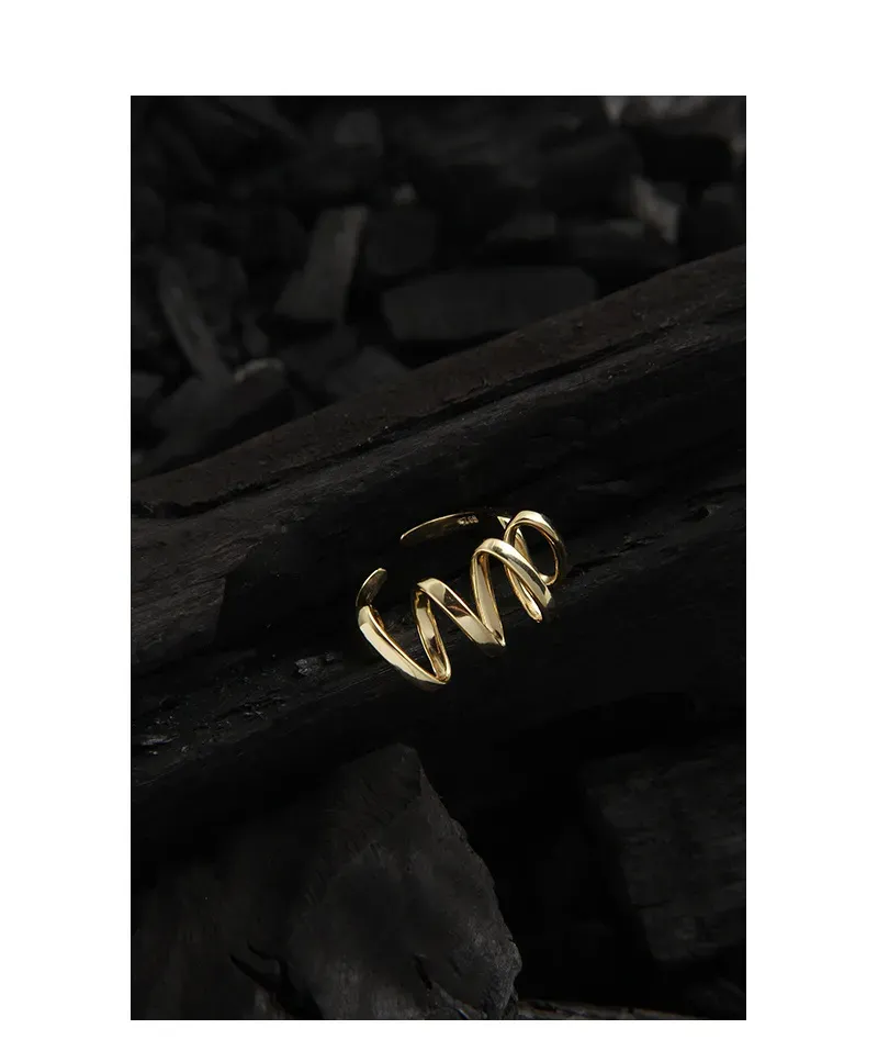 • Style: FeatuHalitha Ring a unique, fluid, and sculptural open-ended design. The ring embodies an organic elegance, gracefully wrapping around the finger with its continuous, ribbon-like form.