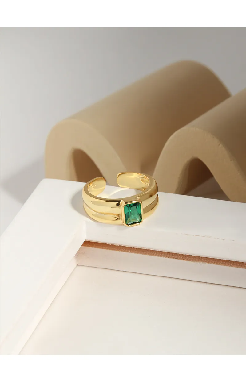 Emerald Green Gemstone Gold-Plated Adjustable Ring