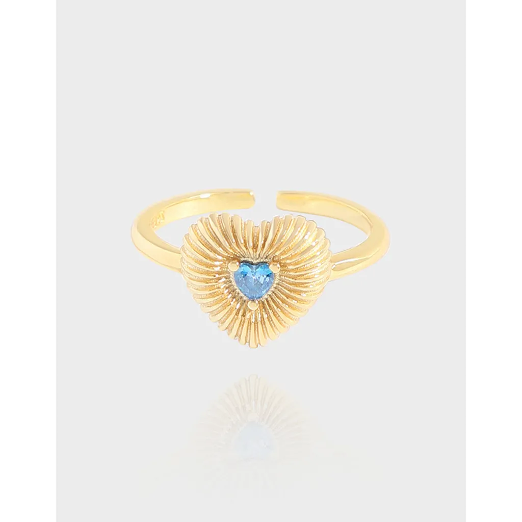 - Color: The ring showcases a rich golden finish, perfectly accentuating the captivating sky blue heart-shaped gemstone nestled at its center.