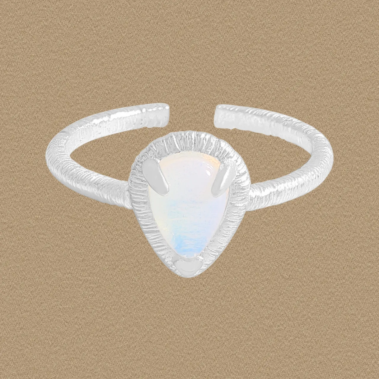 - Color: The ring showcases a radiant, silver-toned metal setting that perfectly complements the captivating, opalescent white gemstone. The gemstone exhibits subtle, iridescent flashes of serene blue, reminiscent of moonlight.