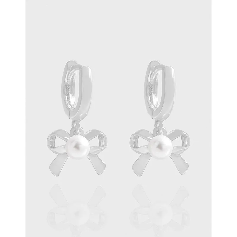 - Style: Designed as delicate drop hoop earrings, they showcase a charming bow-knot motif, symbolizing grace and femininity. The classic hoop design offers a timeless appeal, while the dangling bow with its pearl accent adds a touch of whimsical elegance.