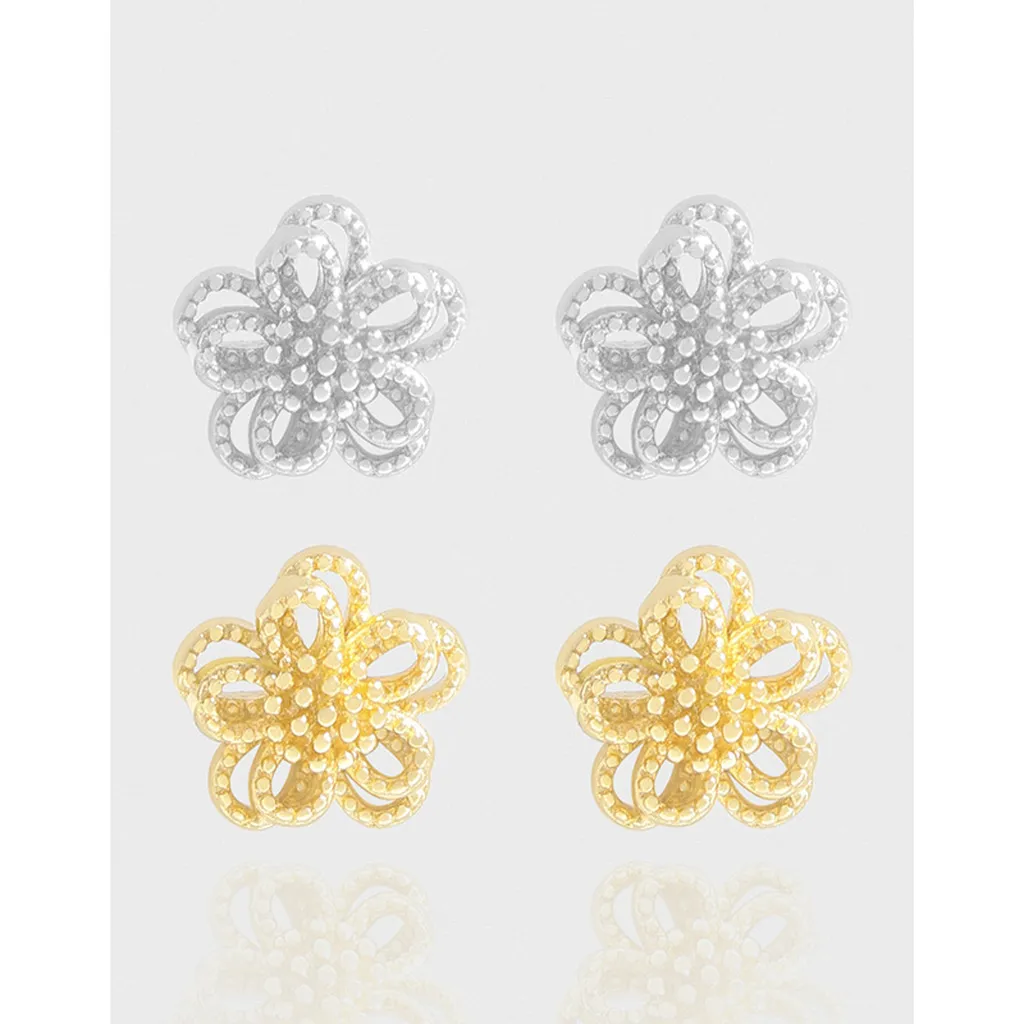 - Style & Design: Each earring features a beautifully sculpted five-petal flower, embodying a delicate and organic aesthetic. The openwork design forms a graceful, looping silhouette reminiscent of petals unfolding. This fluid shape captures the essence of nature’s magic.