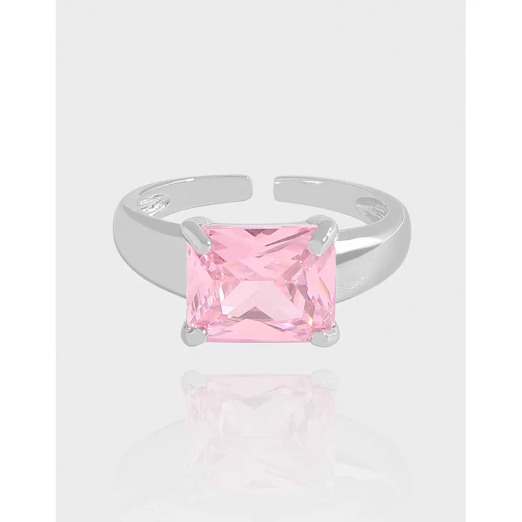 Embrace the celestial beauty with this captivating adjustable ring, a true ode to Malisse’s vision. At its heart lies a square-cut gemstone, reflecting a soft, ethereal pink hue reminiscent of dawn’s first light or a distant aurora.