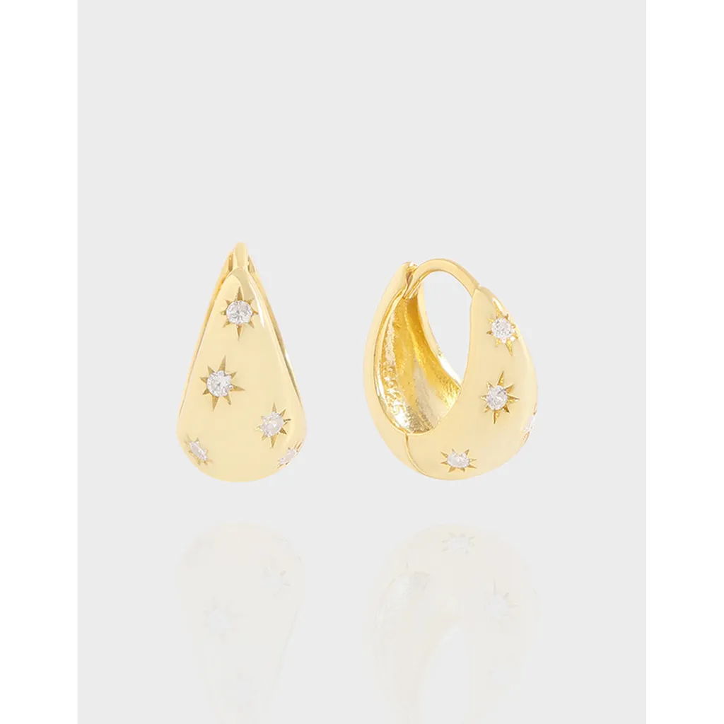 - Style: Puffy teardrop huggie hoops, designed to elegantly curve around the earlobe, embodying a sophisticated celestial aesthetic.