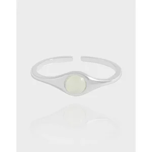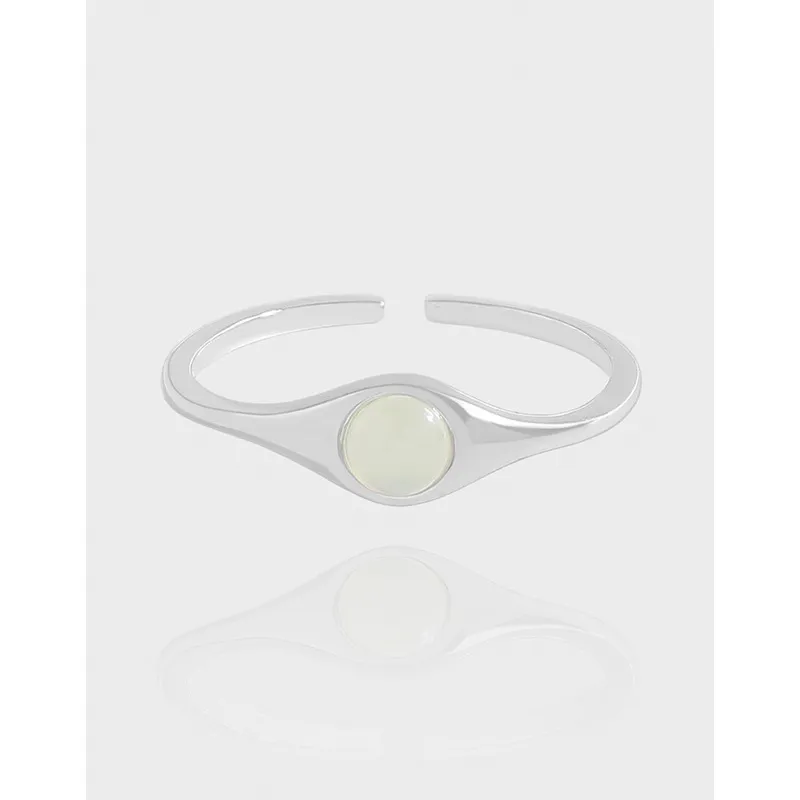 - Color: The polished silver band beautifully complements the soft, luminous pale hue of the central inlay, reflecting the celestial shimmer and depth characteristic of Malisse pieces.