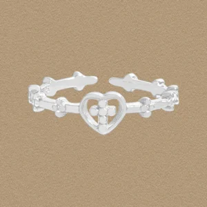 - A central heart outline, thoughtfully enclosing a cross formed by five raised, polished dots.