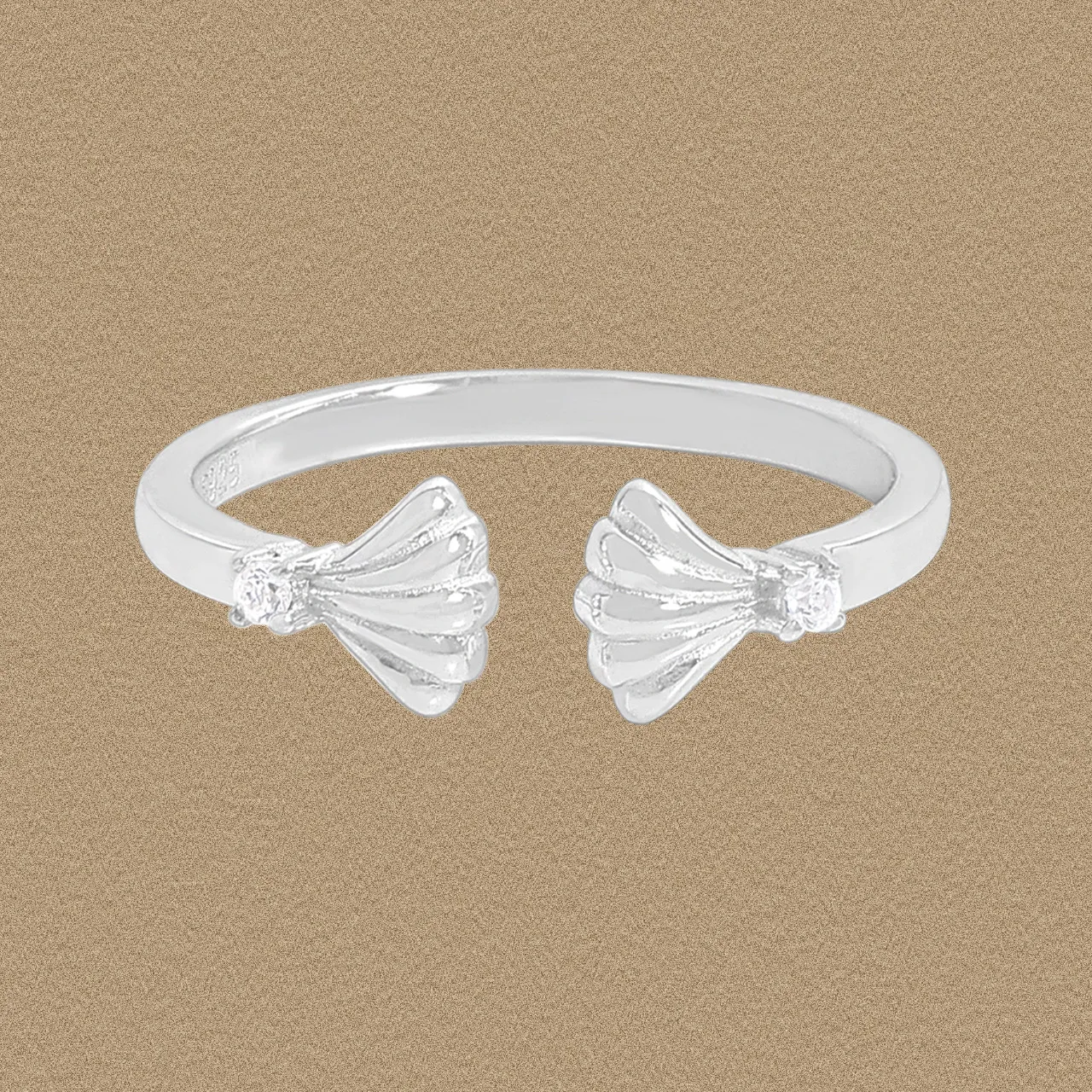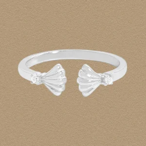 - Patterns & Textures: Each seashell boasts delicate, grooved textures that mimic natural shell patterns, providing a captivating interplay of light and shadow. The smooth, polished band offers a sleek contrast, while a subtle sparkling accent stone nestled at the base of each shell adds a touch of brilliance, reminiscent of dewdrops or starlight. The internal band is marked ‘925’, assuring its sterling silver quality.