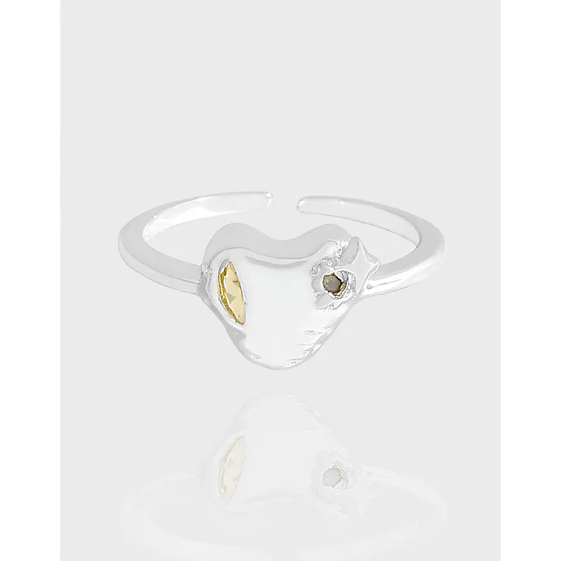 “Celestial Bloom” Silver Heart Adjustable Ring
