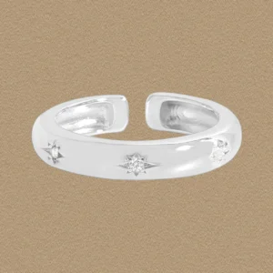 Embrace the magic of the cosmos with this exquisite adjustable silver ring, a true ode to the celestial dance of light. Reflecting the ethereal glow and ever-changing brilliance inspired by nature’s most enchanting moments, this piece captures the essence of the night sky.