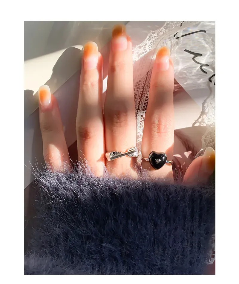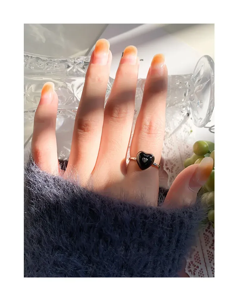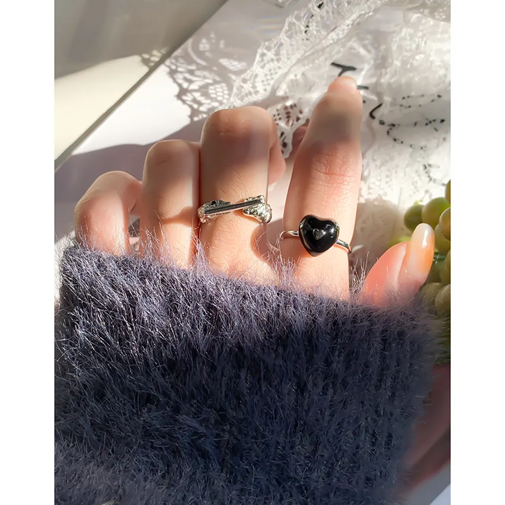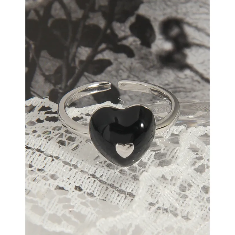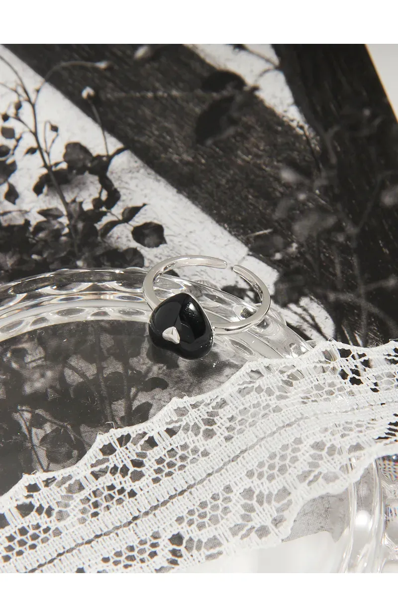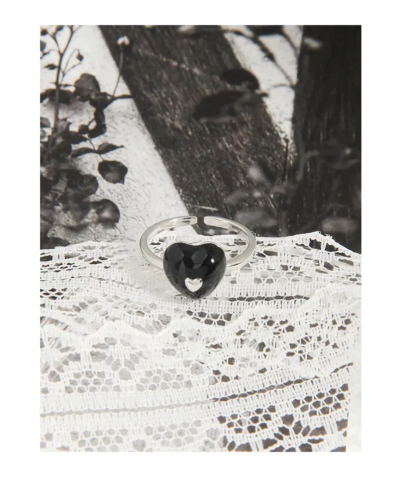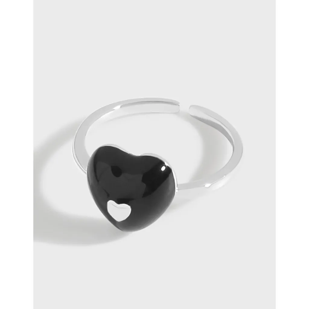 • Color: A deep, glossy black heart centerpiece evokes the mystery of the night sky, beautifully contrasted by a polished silver-toned band. A delicate silver heart cutout, reminiscent of a distant star, adds a touch of captivating brilliance within the dark enamel.