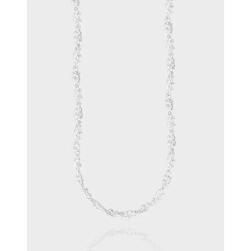 - Patterns or Textures: Crafted from countless tiny, irregularly shaped elements, the chain presents a unique, raw texture. Each element contributes to a dazzling, multifaceted surface that plays with light, creating an intricate sparkle and an appearance of imperfect, natural beauty.
