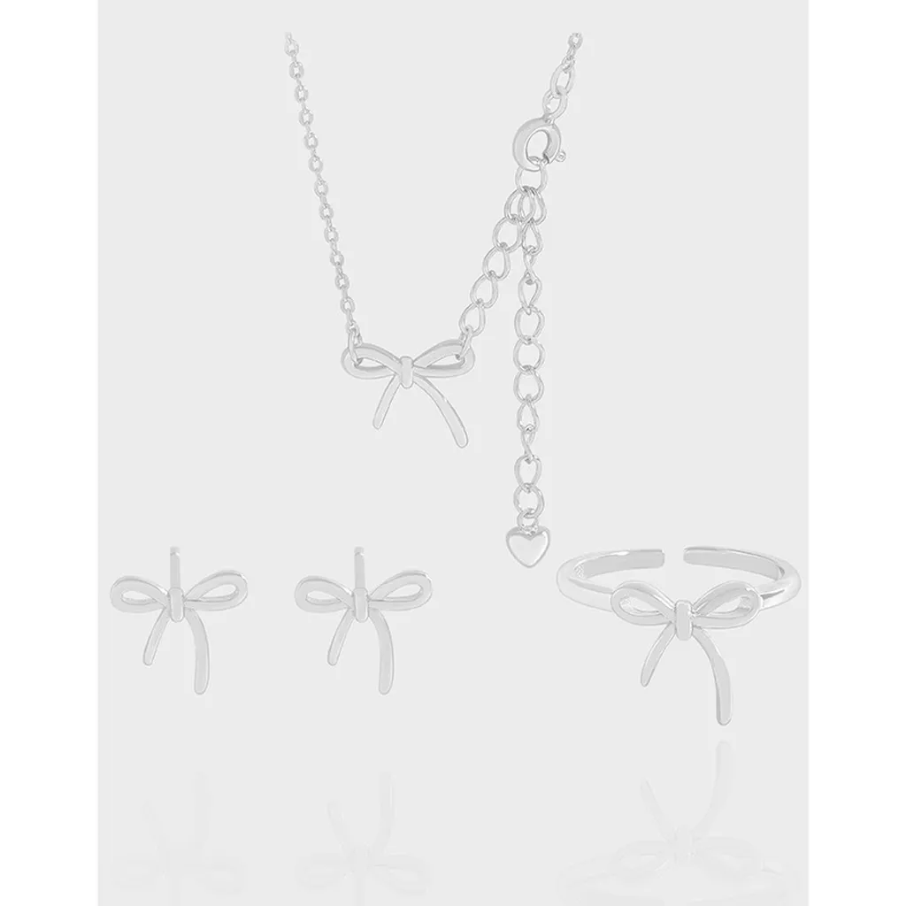 Graceful Silver Bow Stud Earrings