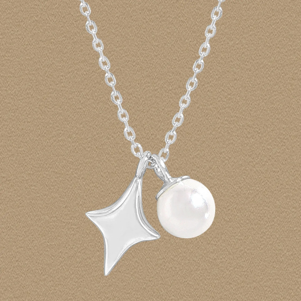- Color: The Iza Necklace boasts the bright, cool luminescence of sterling silver for both its chain and the star charm. It is beautifully contrasted by a radiant white pearl, embodying the ethereal glow and celestial hues inspired by the aurora borealis.