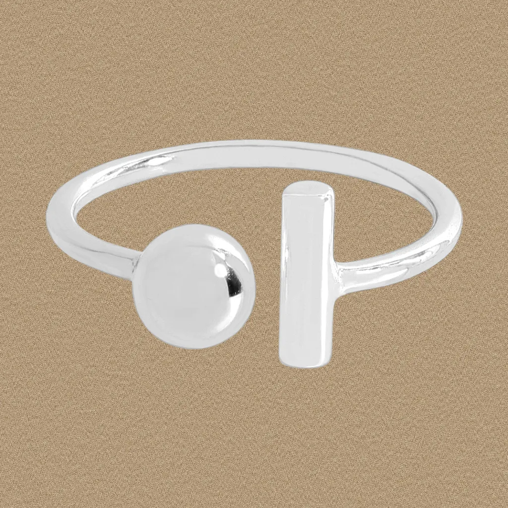 Sleek Silver Bar & Ball Ring for Modern Elegance