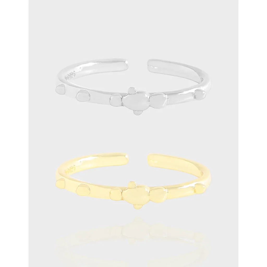 • Patterns & Textures: The smooth, polished band is adorned with organically shaped, raised beads, culminating in a central cluster that evokes a delicate constellation or an abstract natural pattern. This subtle yet tactile design bJelynithra Rings a unique, textural depth, reminiscent of earth’s inherent artistry.