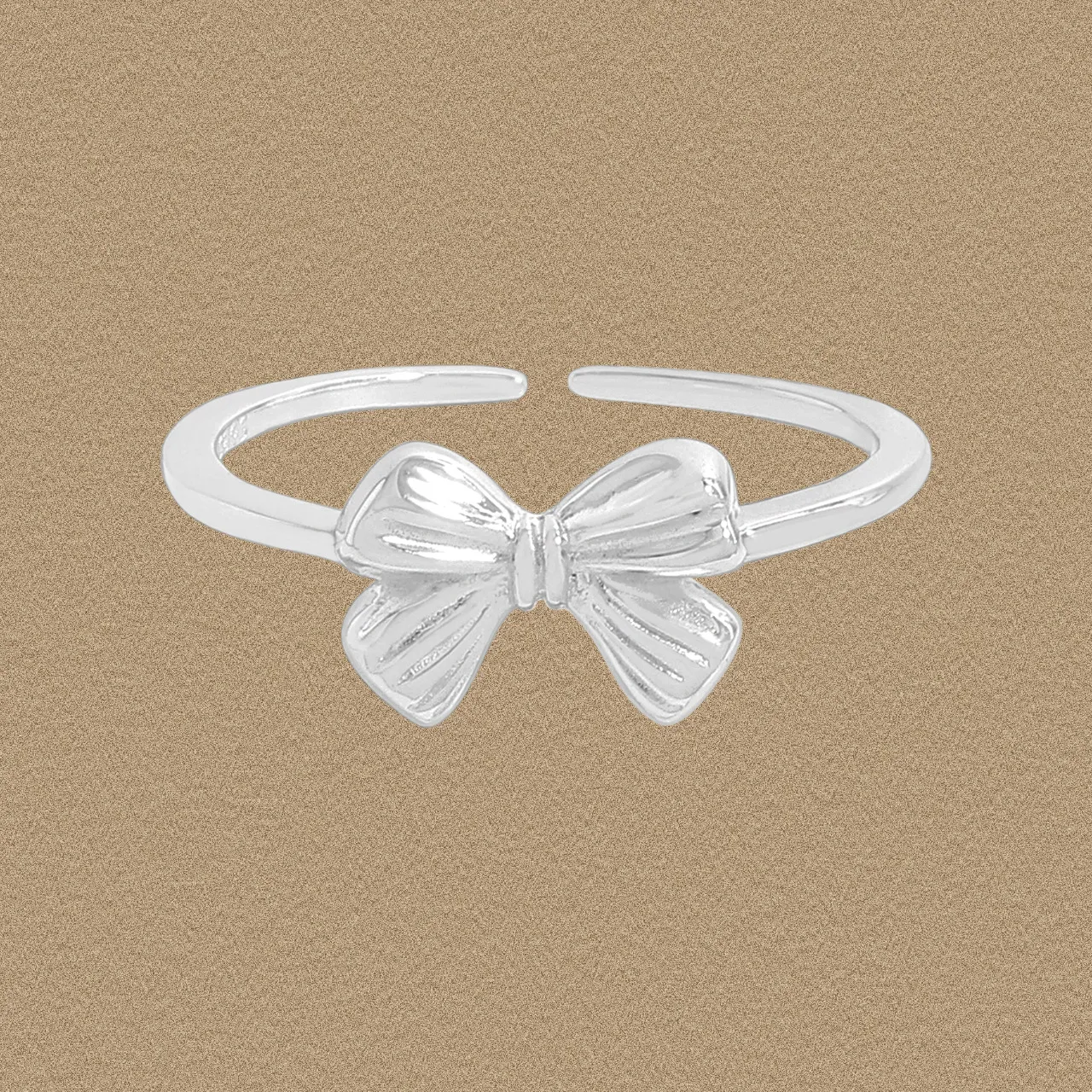 This exquisite ring features a charming bow design, meticulously crafted from lustrous silver. Its open-ended band ensures adjustability, making it a versatile and delightful adornment.