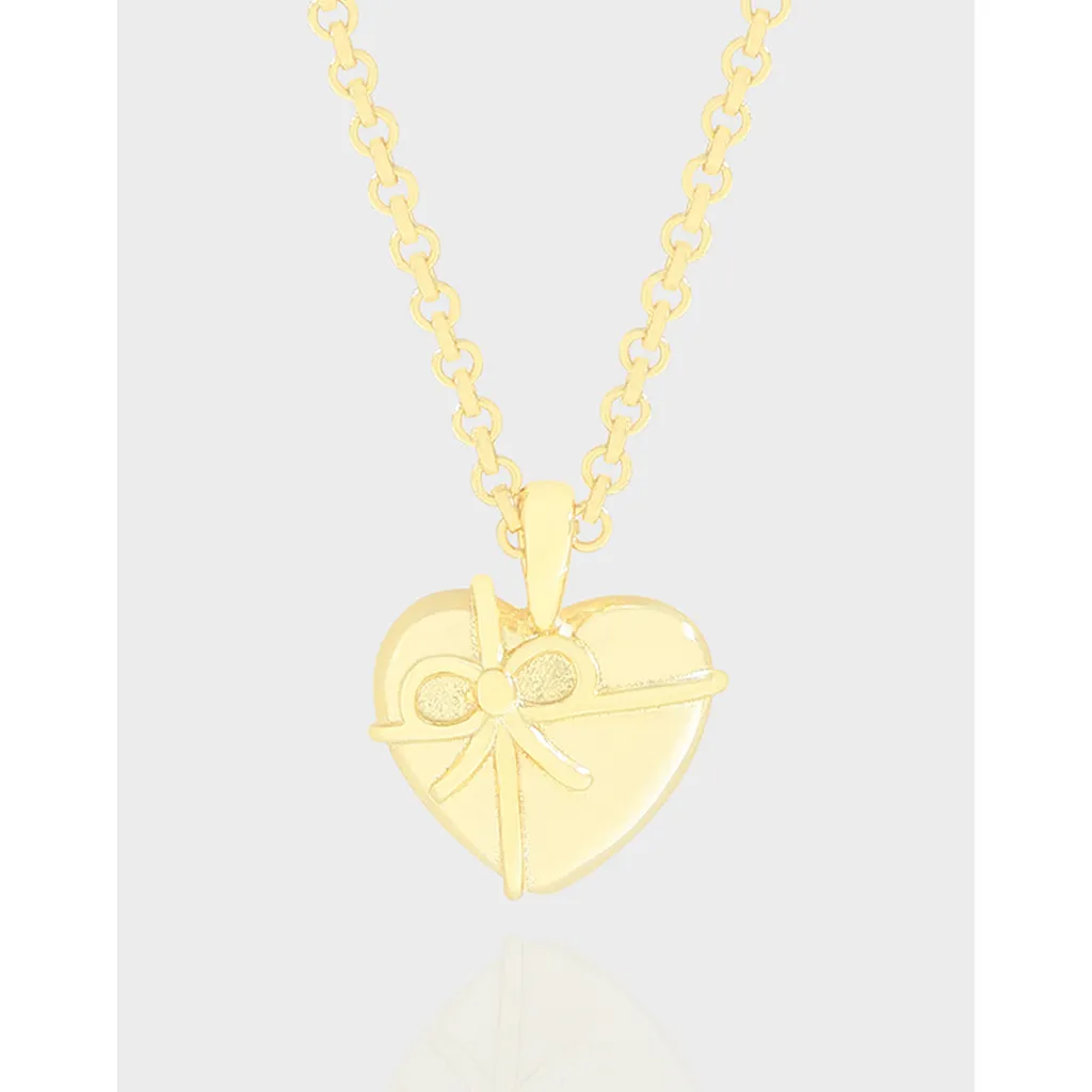 • Style: A heartfelt pendant designed as a gift box, adorned with an exquisitely detailed bow and ribbon motif, symbolizing love and precious surprises. The pendant hangs gracefully from a delicate link chain, creating an elegant and organic flow.
