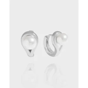Crafted from polished silver, these huggie hoops shimmer with a cool, radiant glow. Each earring is adorned with a perfectly round, luminous white pearl, exuding a soft, ethereal luster that evokes the serene beauty of moonlight.