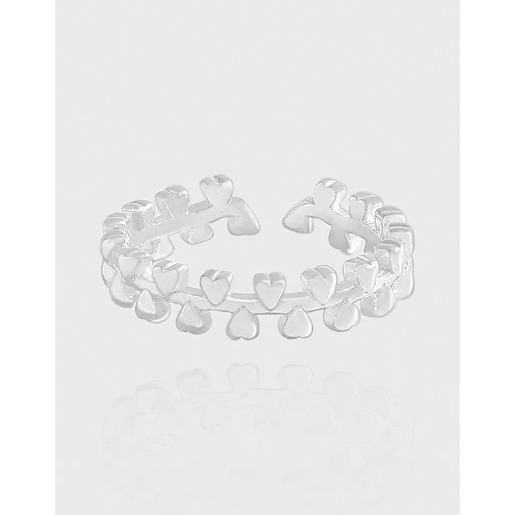 Open-Ended Silver Heart Pattern Ring