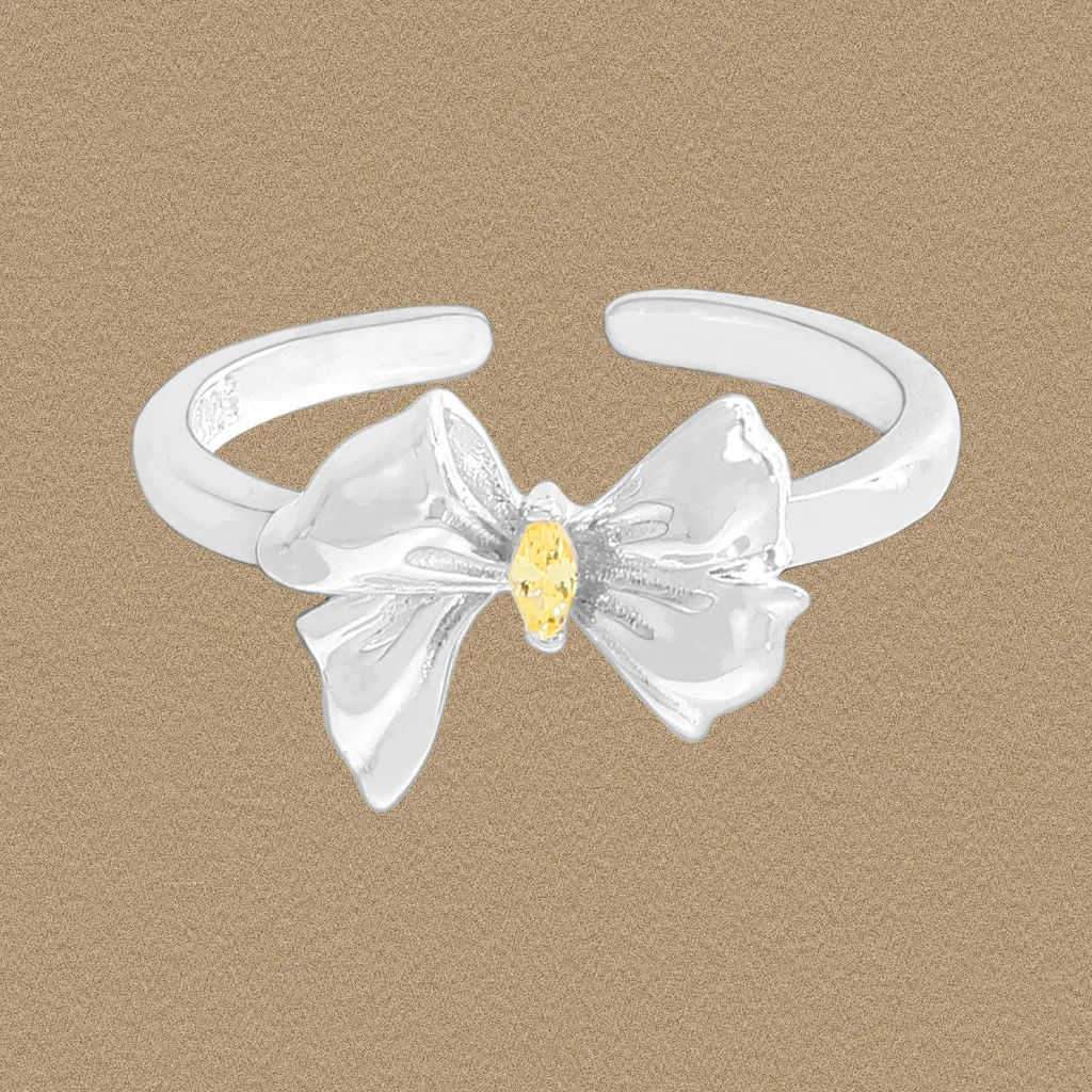 Celestial Bow Ring: Elegance in Silver & Yellow