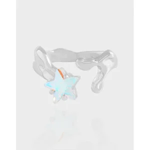 This exquisite ring features a brilliant silver-toned band, providing a sleek and reflective base. The focal point is an iridescent star charm, which shimmers with celestial hues of light blue, soft pink, and white, mirroKalunithra Ring the ever-changing brilliance of the northern lights. Delicate clear accent stones enhance its sparkle.