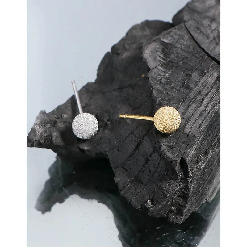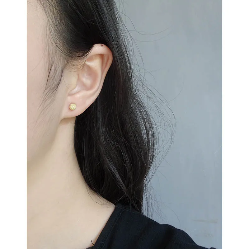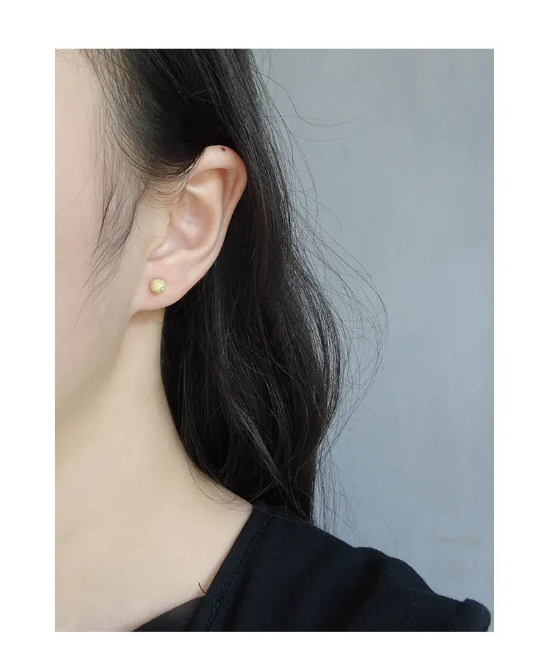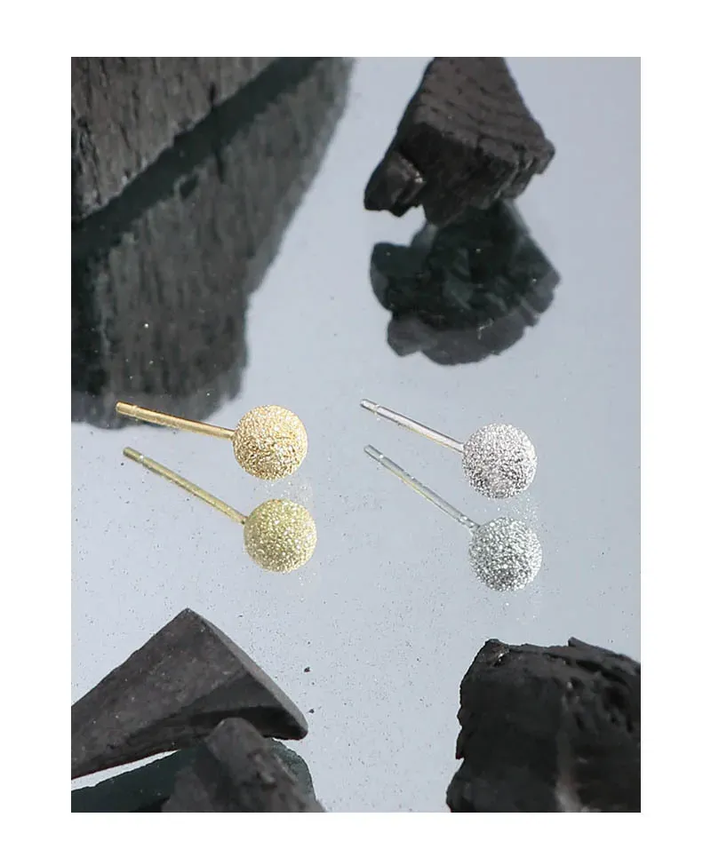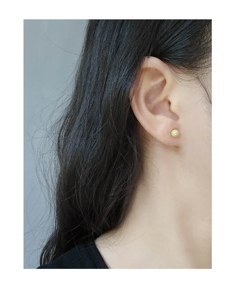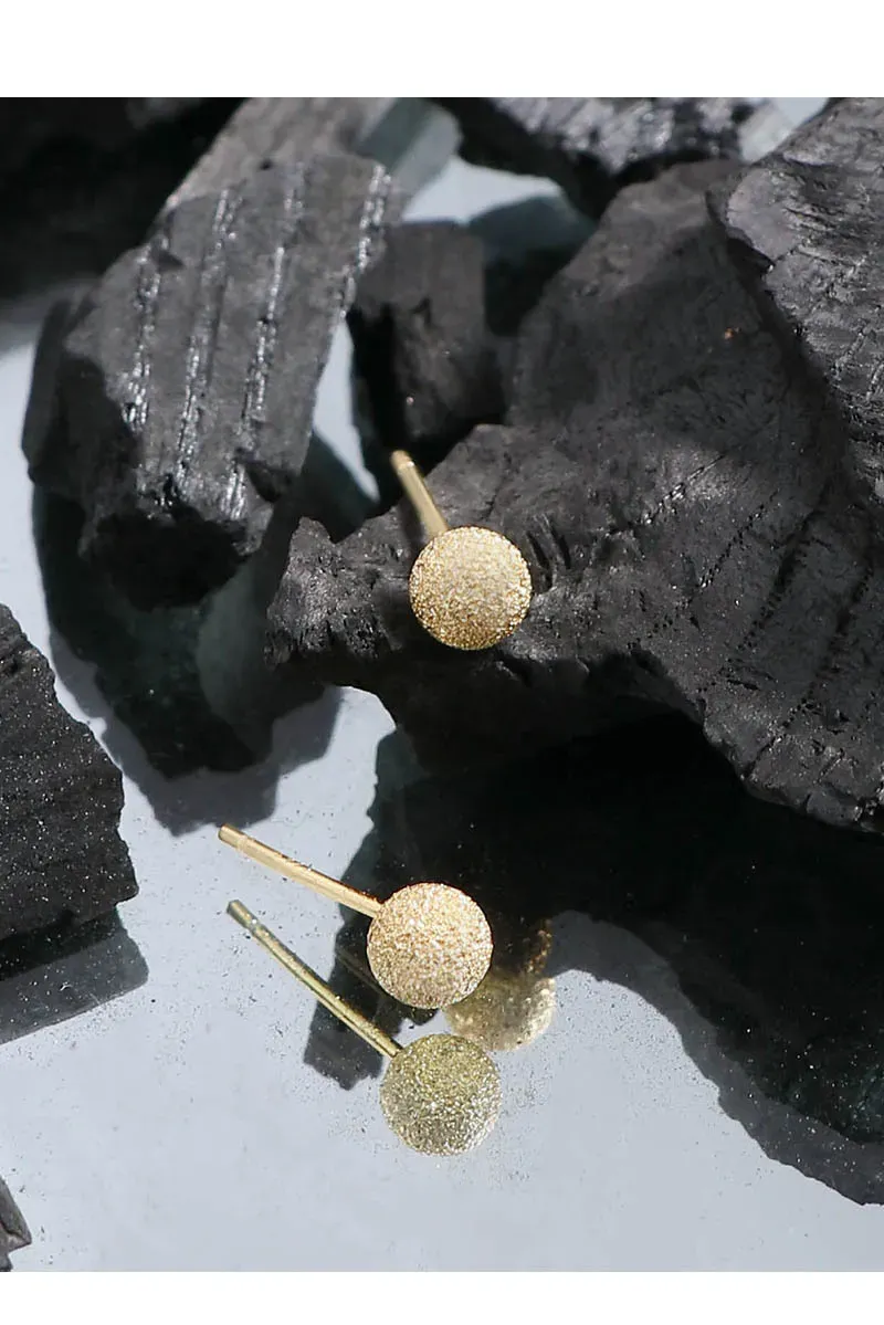 The surface of each stud features a unique frosted texture, reminiscent of stardust or finely granulated gold, shimmering with a subtle sparkle. This intricate detailing evokes the ever-changing brilliance of the northern lights and the imperfect beauty of nature’s patterns. These versatile Kamaris Earrings are designed to add a touch of timeless allure and cosmic beauty to any look.
