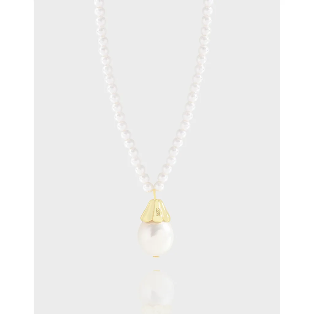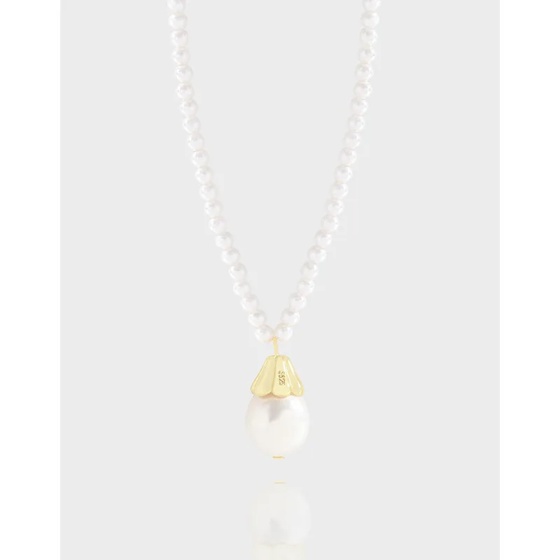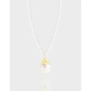 Discover a piece where classic elegance meets natural artistry. This exquisite Malisse necklace features a gracefully strung strand of luminous white pearls, culminating in a captivating teardrop pearl pendant.