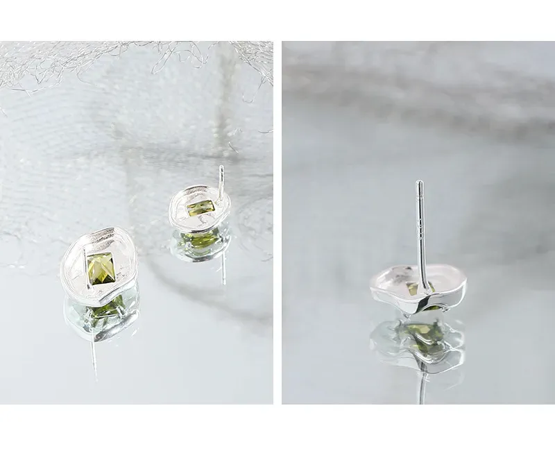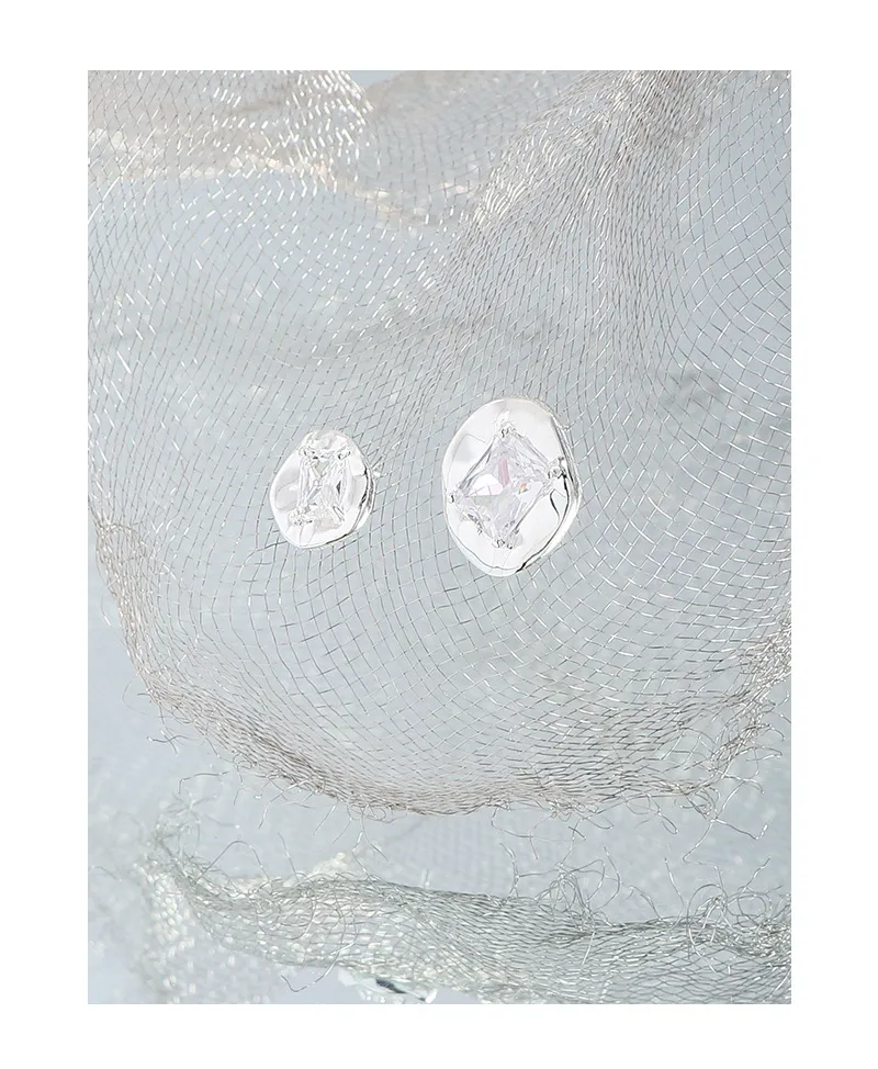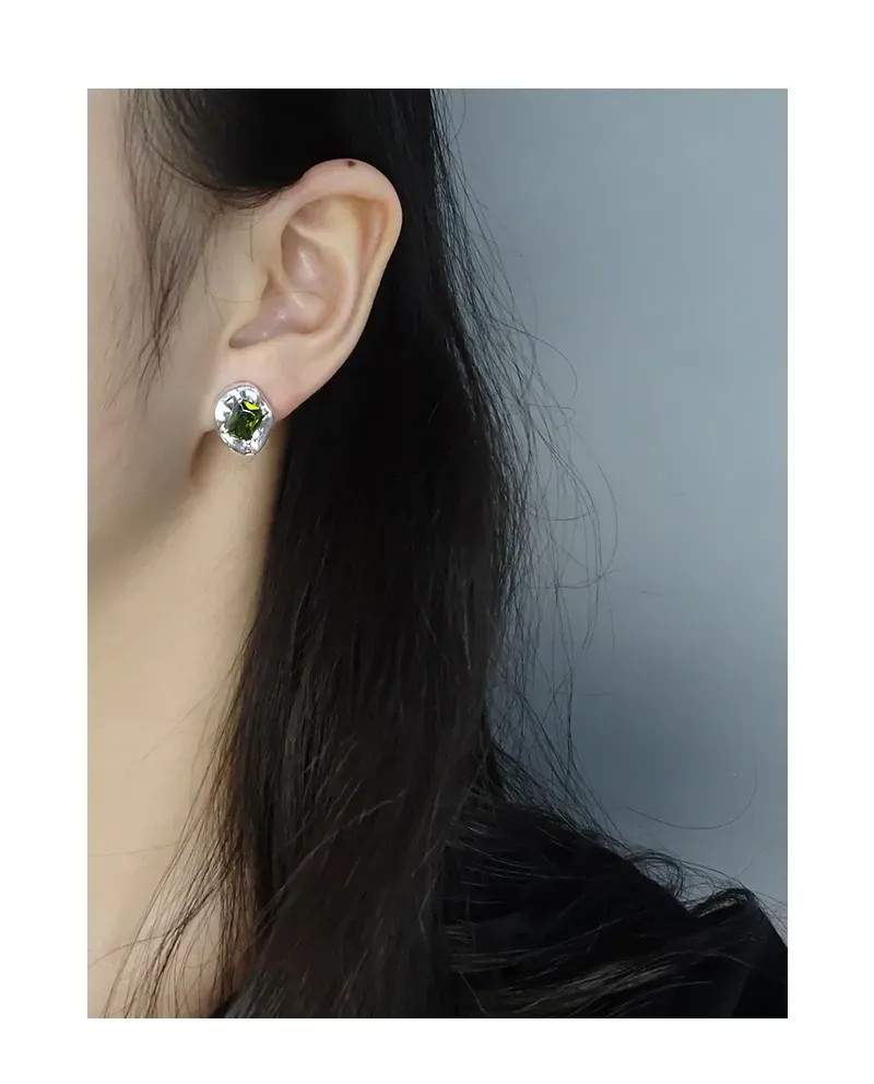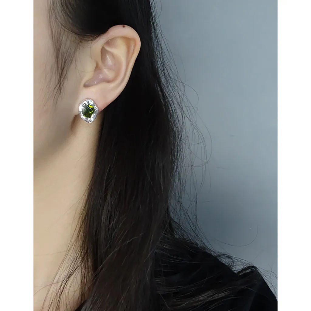 • Style: Designed with a modern, organic aesthetic, these stud earrings boast an artfully irregular and fluid silhouette. The molten-like silver setting provides a contemporary edge, reminiscent of natural forms reshaped by elemental forces, offering a sophisticated yet raw elegance.