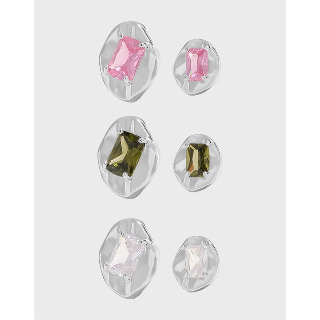 • Color: These captivating Kianda Earrings feature a choice of radiant rectangular gemstones: vibrant rose pink, deep olive green, or brilliant clear. Each precious stone is cradled within a lustrous silver-toned setting that reflects light with an iridescent glow, mirroring the diverse hues of the cosmos.