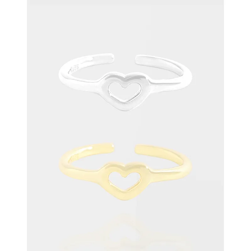 • Style: Featuring a delicate open heart design at its center, the ring embodies a romantic and elegant aesthetic. Its adjustable, open-ended band ensures a comfortable and versatile fit, making it a piece that balances ease with timeless charm.