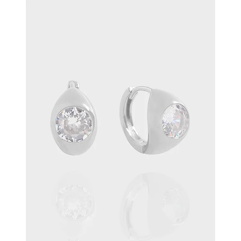 - Style: These huggie hoop Kylenara Earrings blend minimalist design with refined sophistication. They feature a distinctive teardrop-inspired front, gracefully encasing a single, brilliant stone in a sleek bezel setting. The secure, hinged closure ensures comfortable wear.
