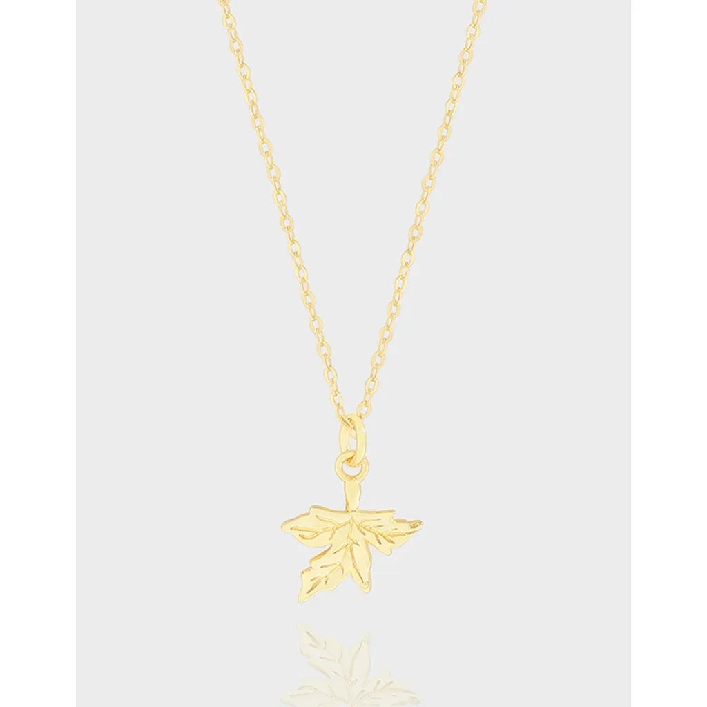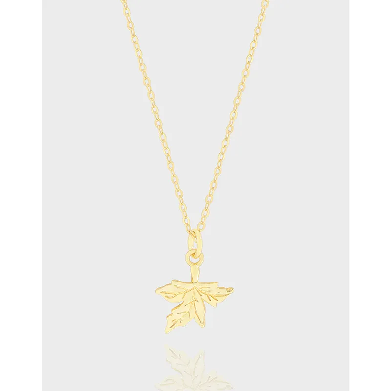 - Patterns & Textures: The centerpiece is a finely detailed maple leaf pendant, crafted with subtle three-dimensional contours and gentle curves that mimic the natural form of a leaf. The surface is polished to a smooth, reflective finish, highlighting its organic shape, while the accompanying fine link chain adds a delicate, subtle texture.