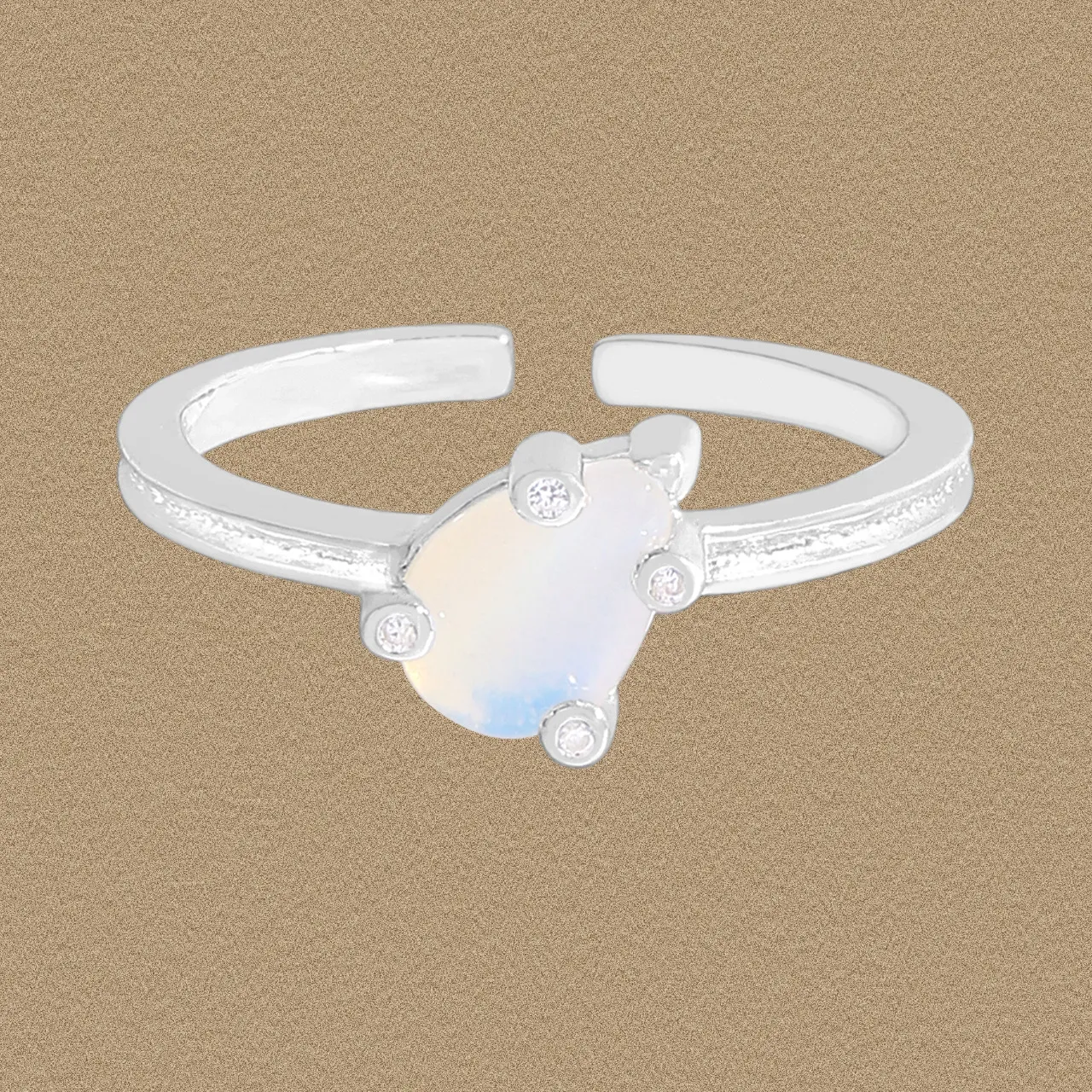 • Color: GlimmeLalita Ring silver-toned band, embracing a captivating iridescent centerpiece that shifts with hues of soft white, serene blue, and subtle pink. Four brilliant clear accent stones add a celestial sparkle.