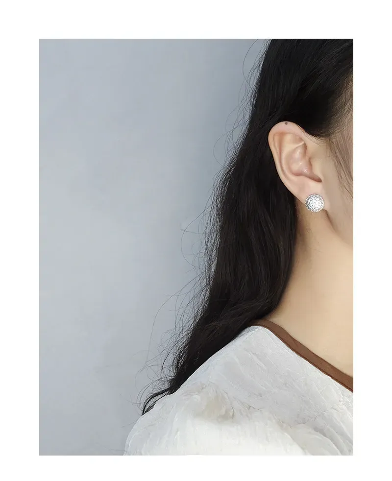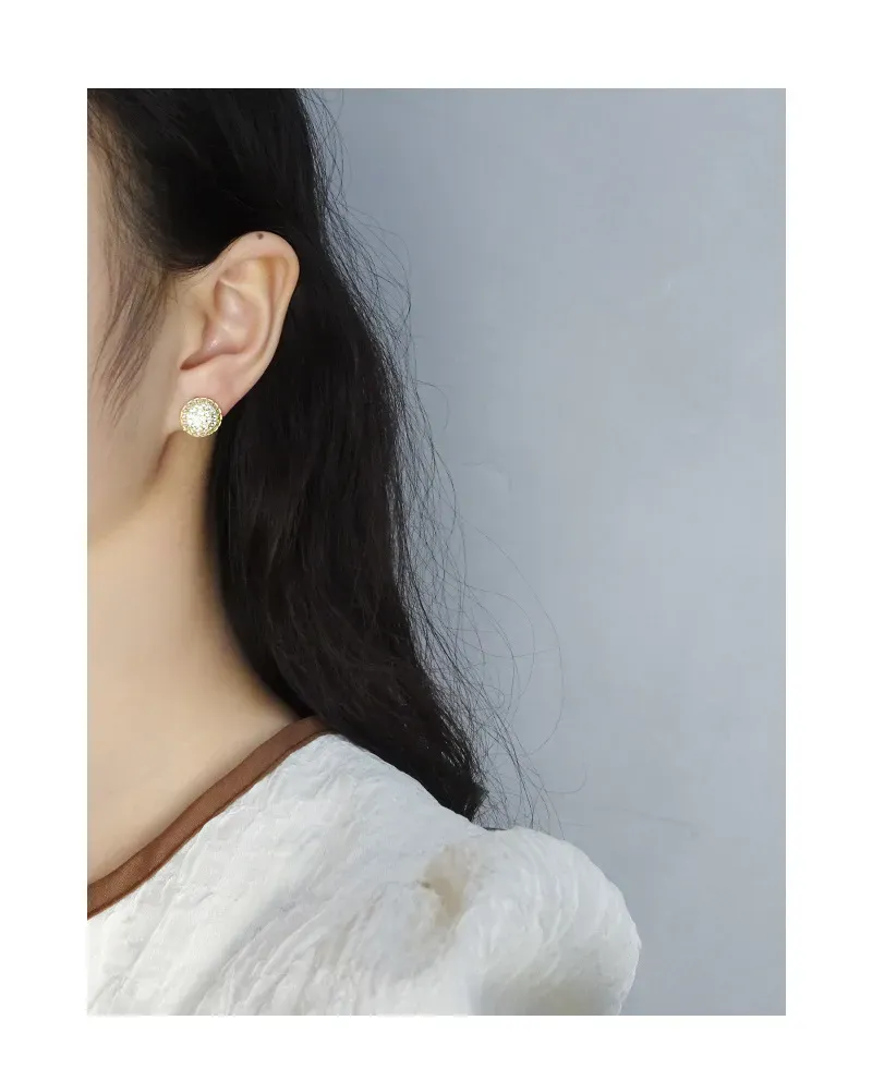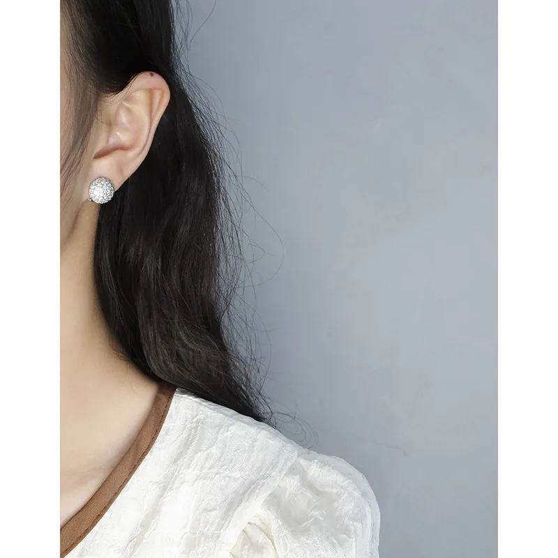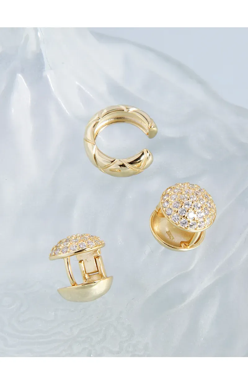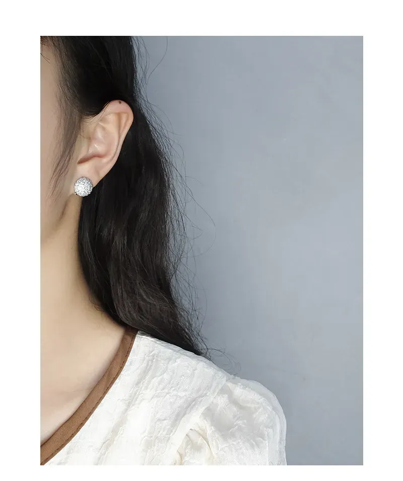 - Patterns & Textures: The dome-shaped front of each earring is meticulously set with a dense pave pattern of numerous small, shimmering stones, creating an exquisite texture that sparkles intensely. The smooth, lustrous gold frame provides a luxurious foundation for the intricate stone work.