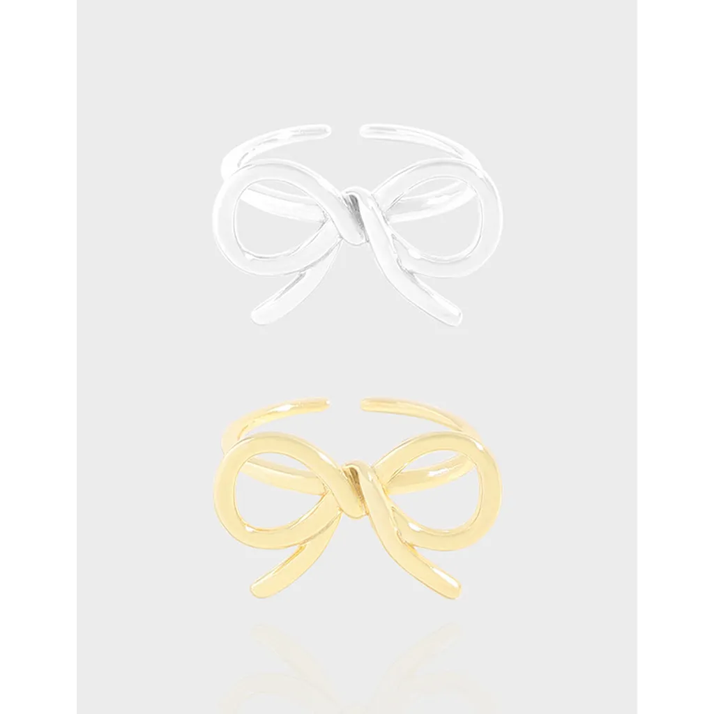 Embrace whimsical elegance with our charming bow-shaped ring, a delicate piece that effortlessly captures grace and allure. This captivating accessory is designed to add a touch of playful sophistication to any ensemble, reflecting a fluid and organic beauty.
