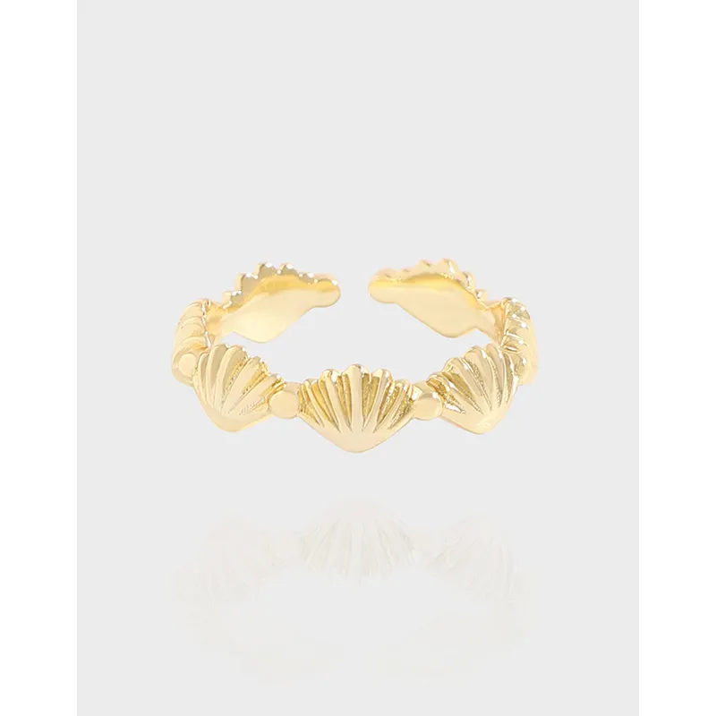 - Patterns & Textures: The band is intricately adorned with a repeating pattern of detailed scallop shell motifs. Each shell features subtle, raised ribbed textures, evoking the natural beauty and unique patterns found in marine life. Smooth, spherical beads separate each shell, adding a fluid and cohesive rhythm to the design.