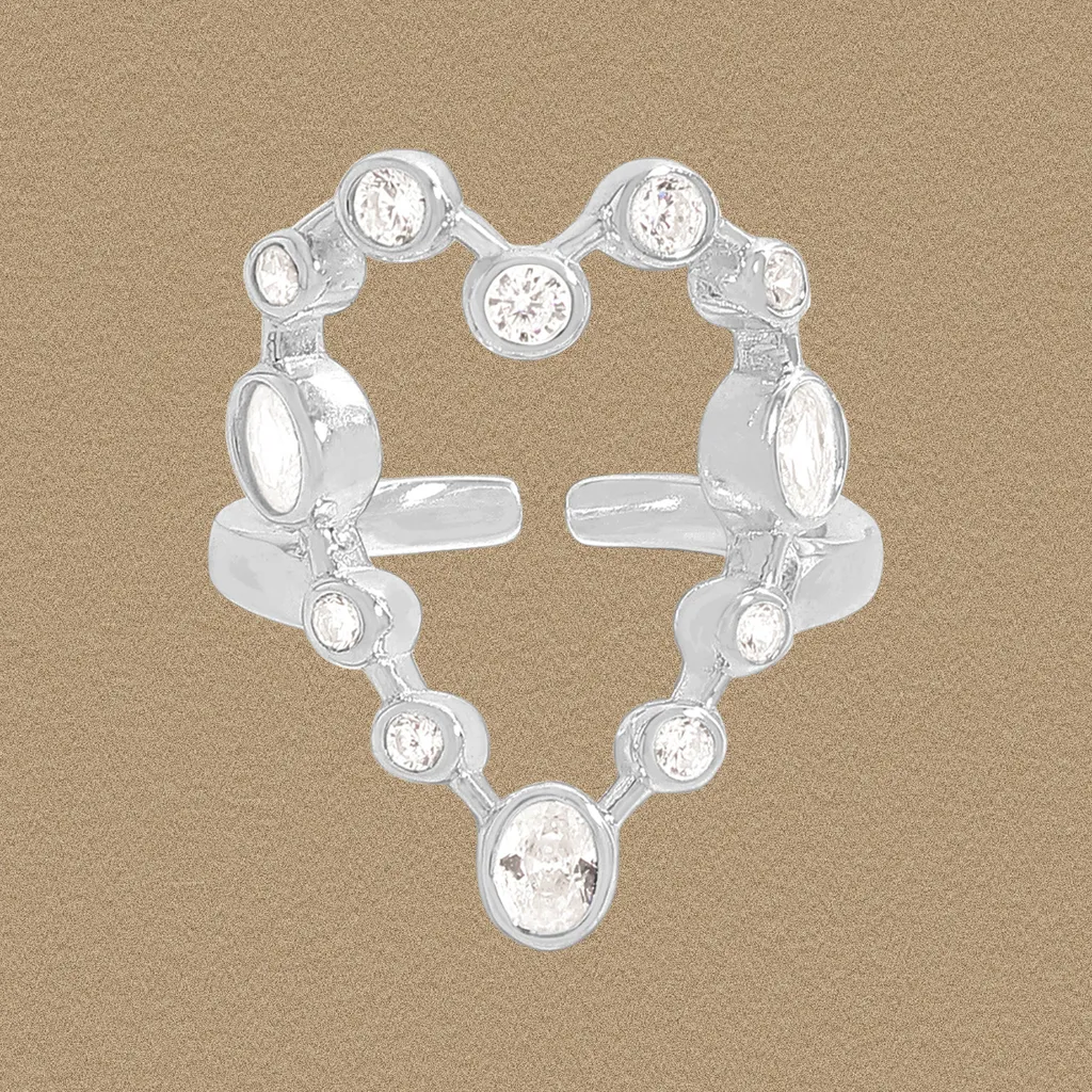 Inspired by the captivating wonder of Malisse, this exquisite open ring beautifully captures the fluid artistry of the cosmos. Crafted from lustrous silver-toned metal, its unique design delicately outlines a heart shape, reminiscent of a celestial constellation.
