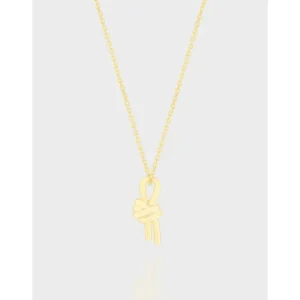 Discover the enchanting allure of the Malisse Gold Knot Necklace, a delicate piece that embodies the brand’s ode to nature’s magic and the beauty of the cosmos. This necklace features a beautifully crafted pendant:
